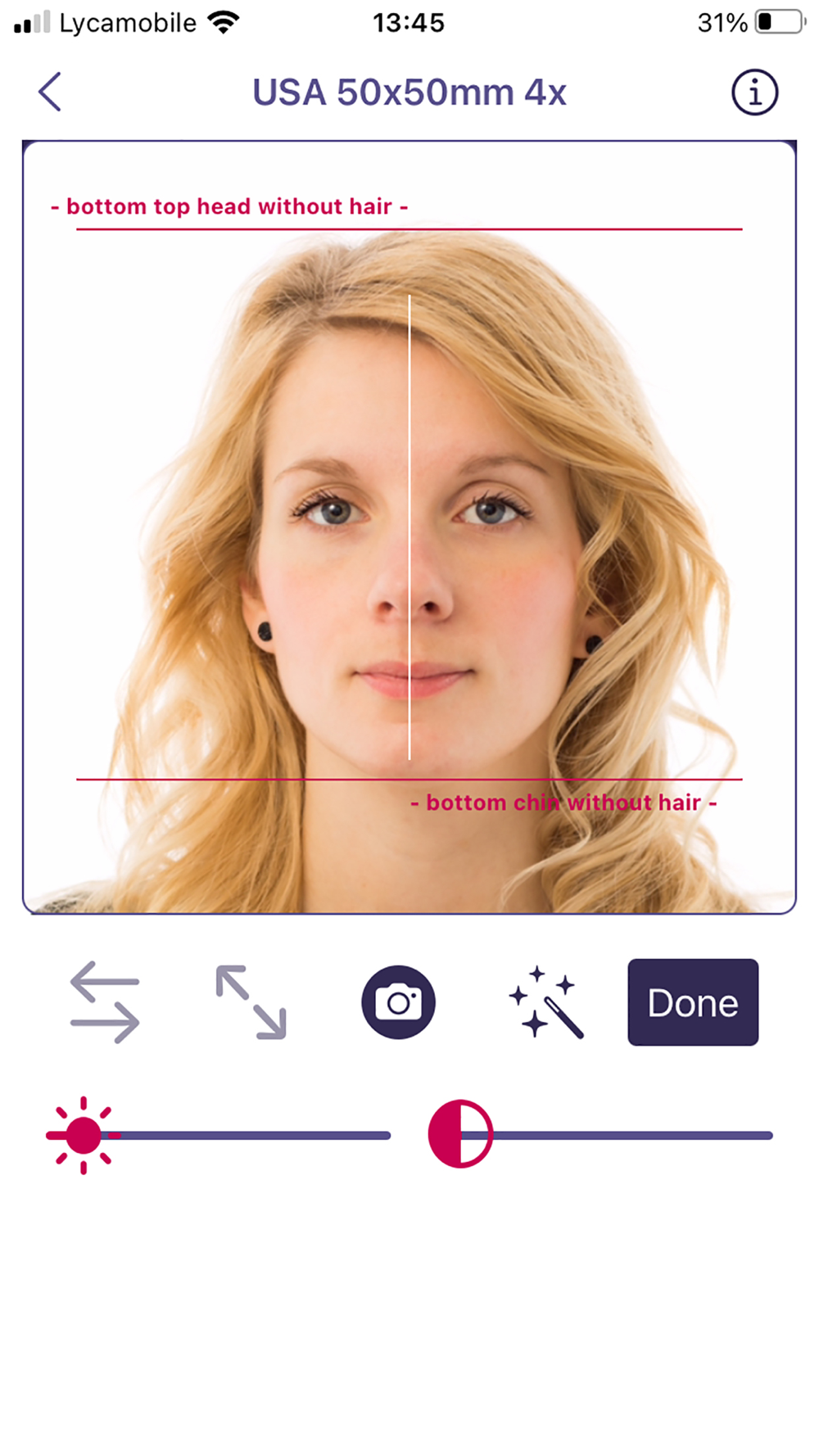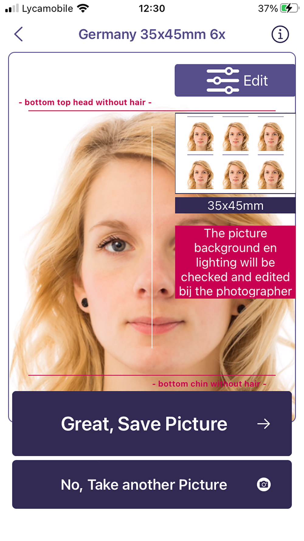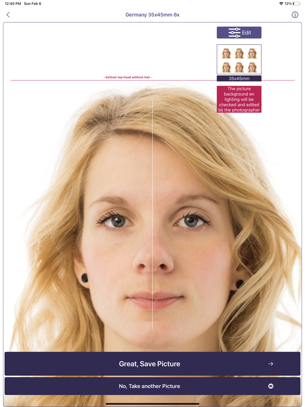 First make an official passport photo with the app.