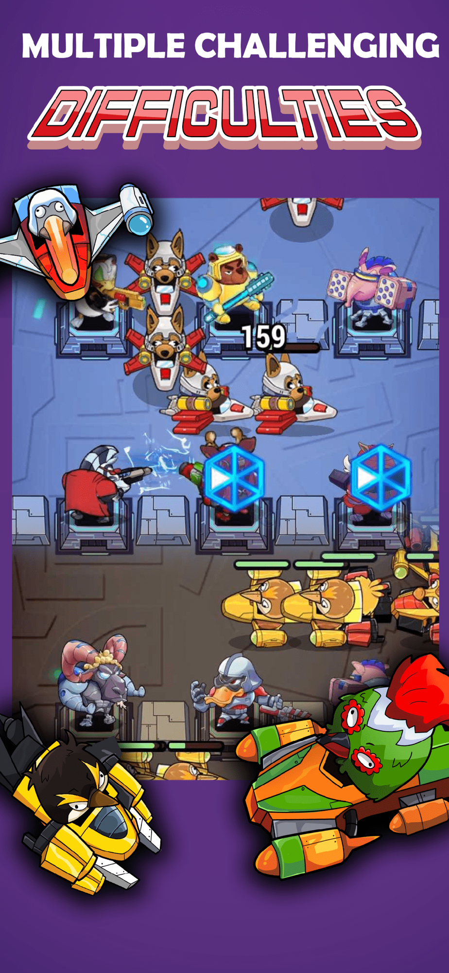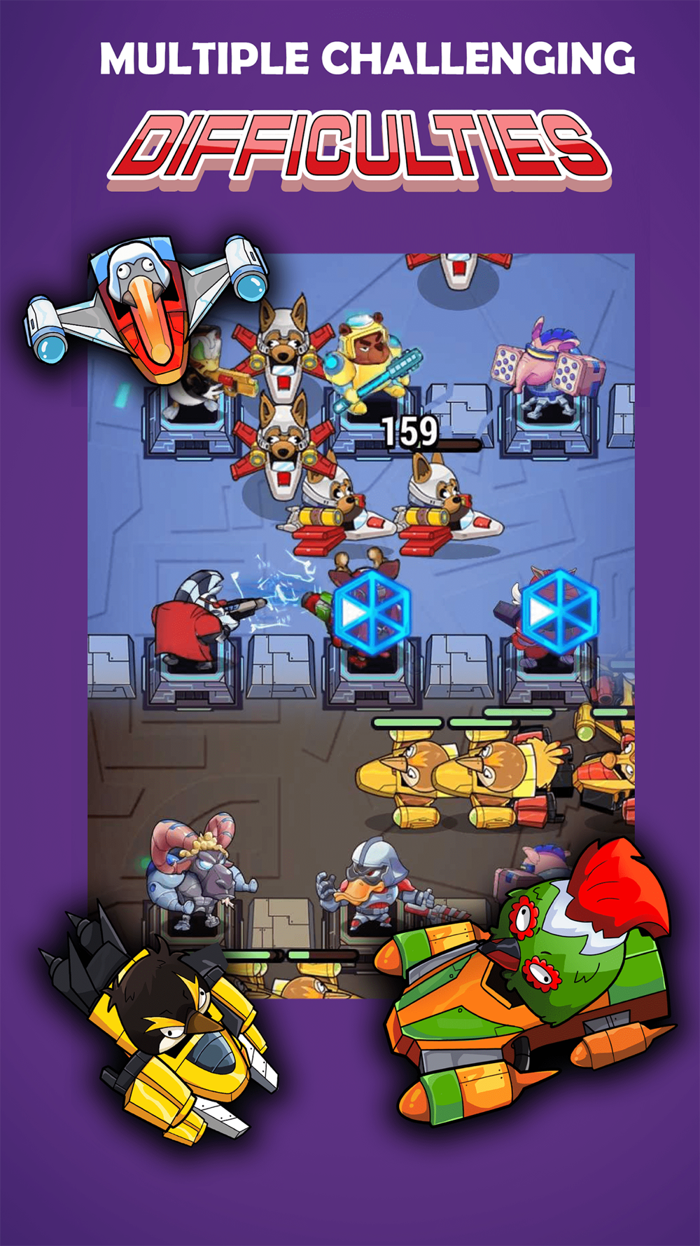 From Battle Chimp to Dark Father, various galaxy guardians are available for you to recruit! Defeat enemies and collect your resources to recruit new guardians and upgrade your guardians.