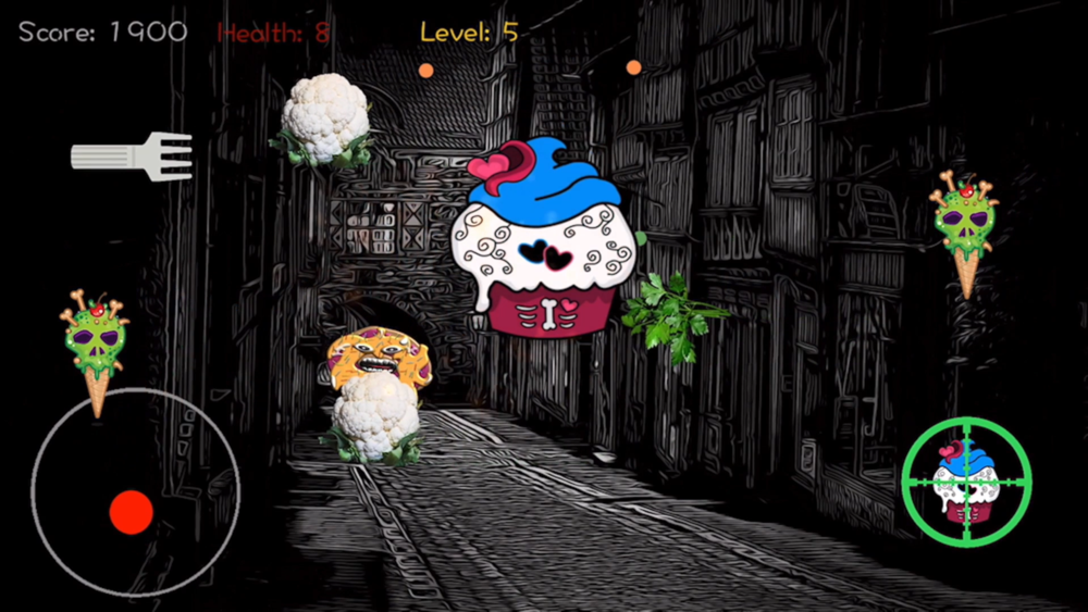 Move around using the touchscreen joystick and shoot the unhealthy foods that contain large amounts of sugar using the fire button.
