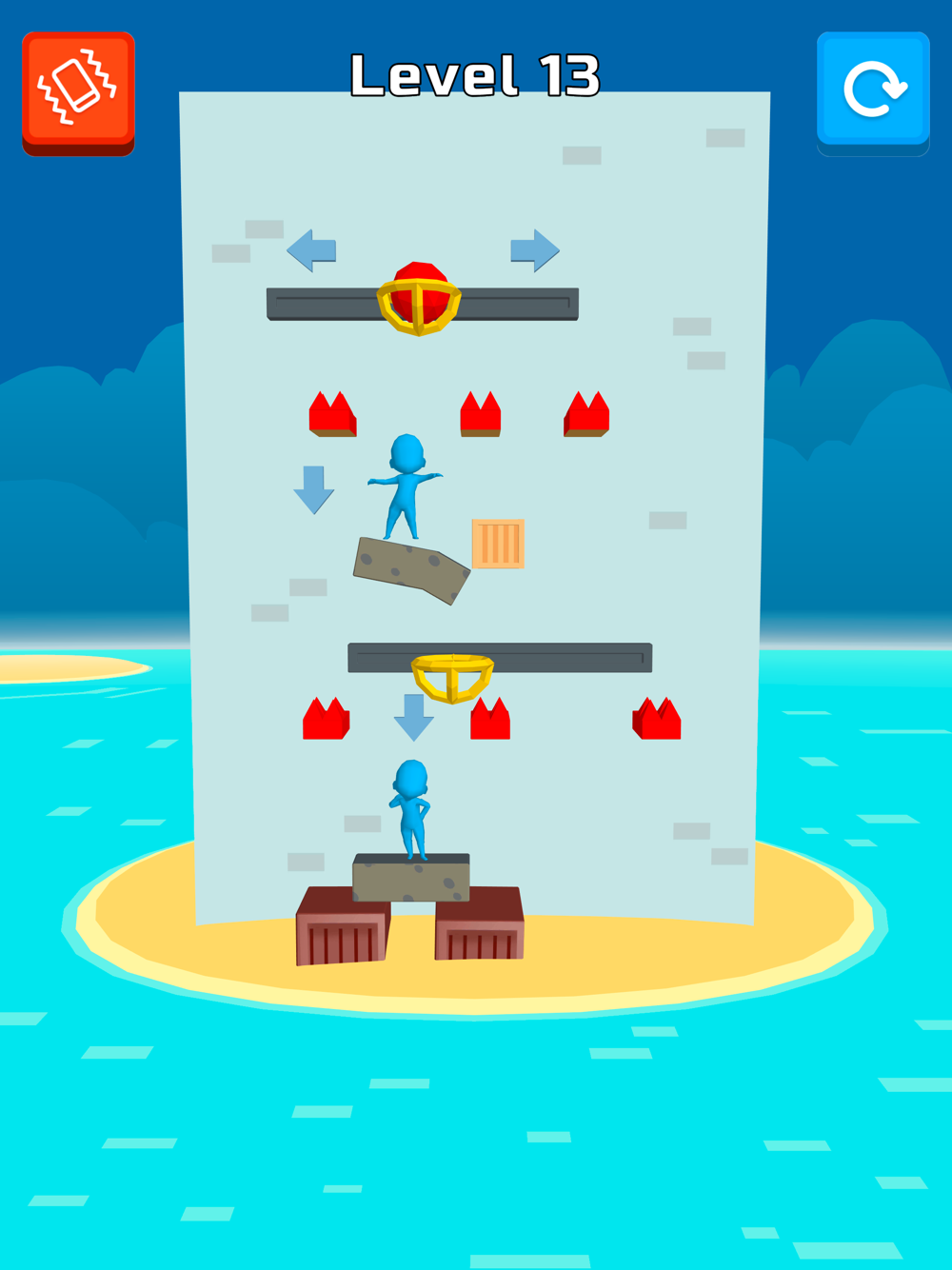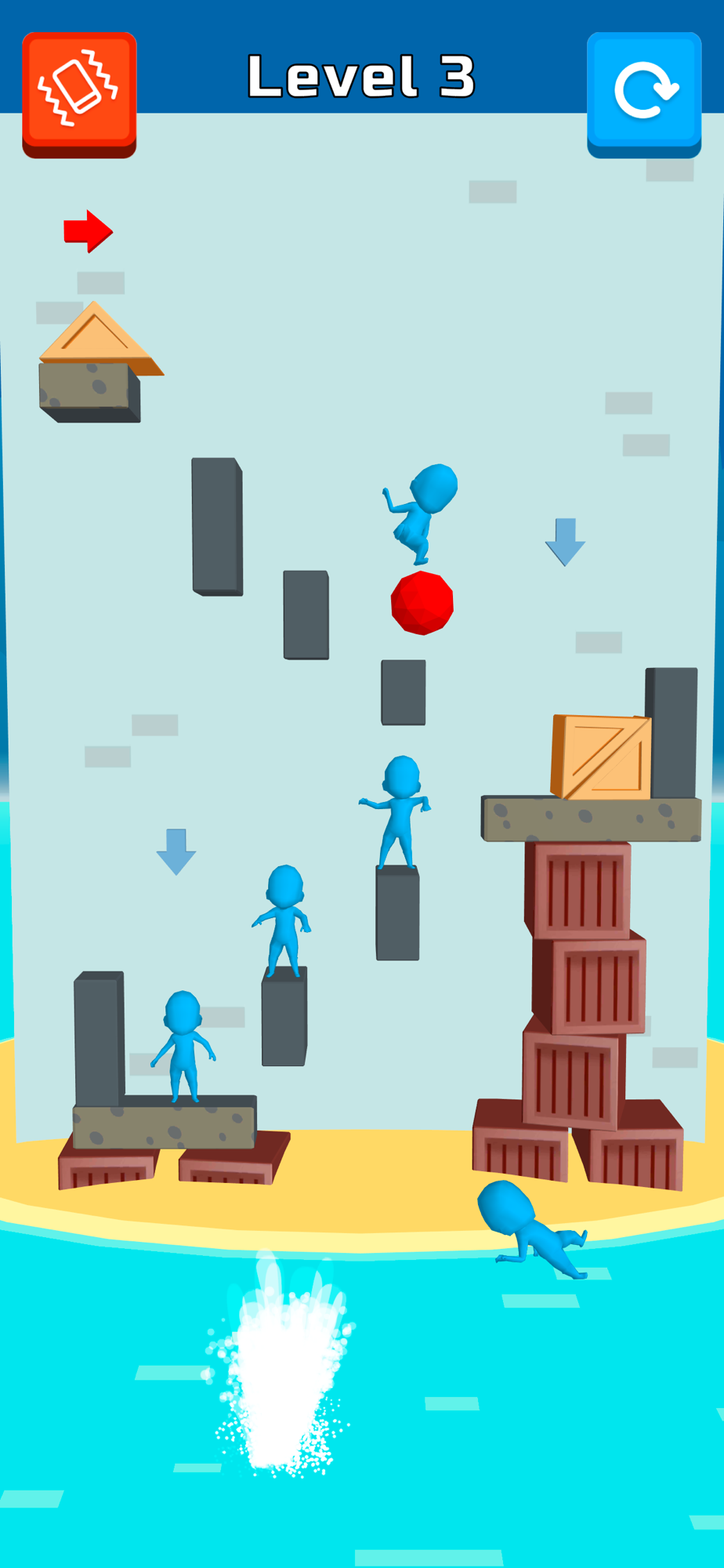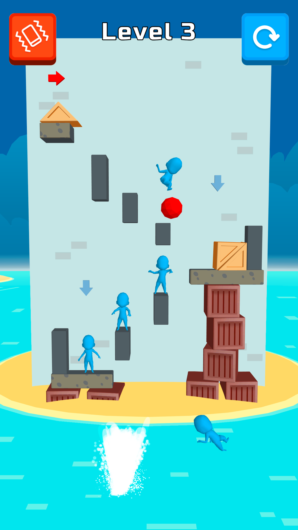 In this addictive puzzle game you need to crush wooden objects by tap. Crushing objects will allow a red ball to move and push all dummies on it's way