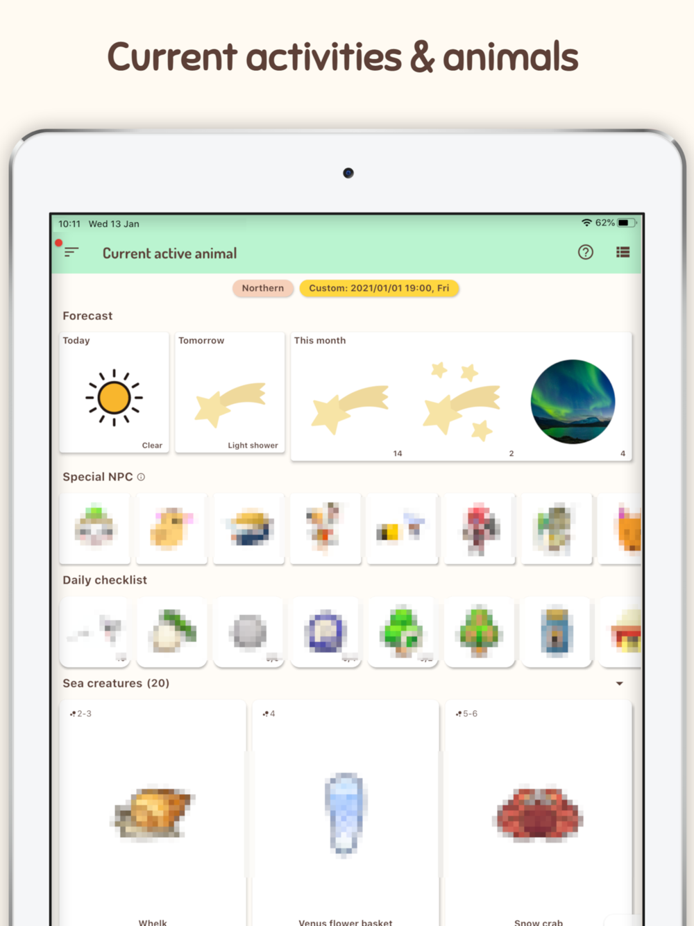 You can mark your collected items, view current active animals, explore new furniture, meet some friends, and more...