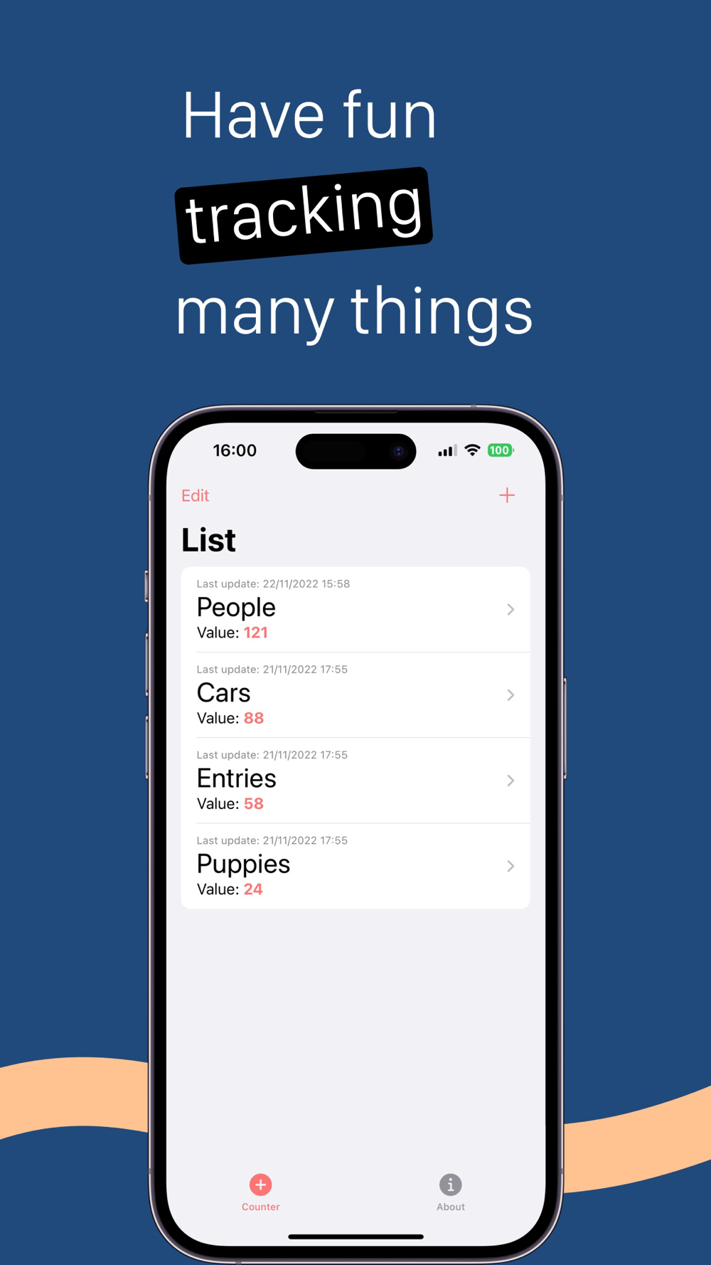 With My Counter, count the number of people in a show, the coffees you drink per day, the cigarettes you consume each day, the fruits you ate today, the animals in your shelter, the cars in your dealership and anything else you wish.