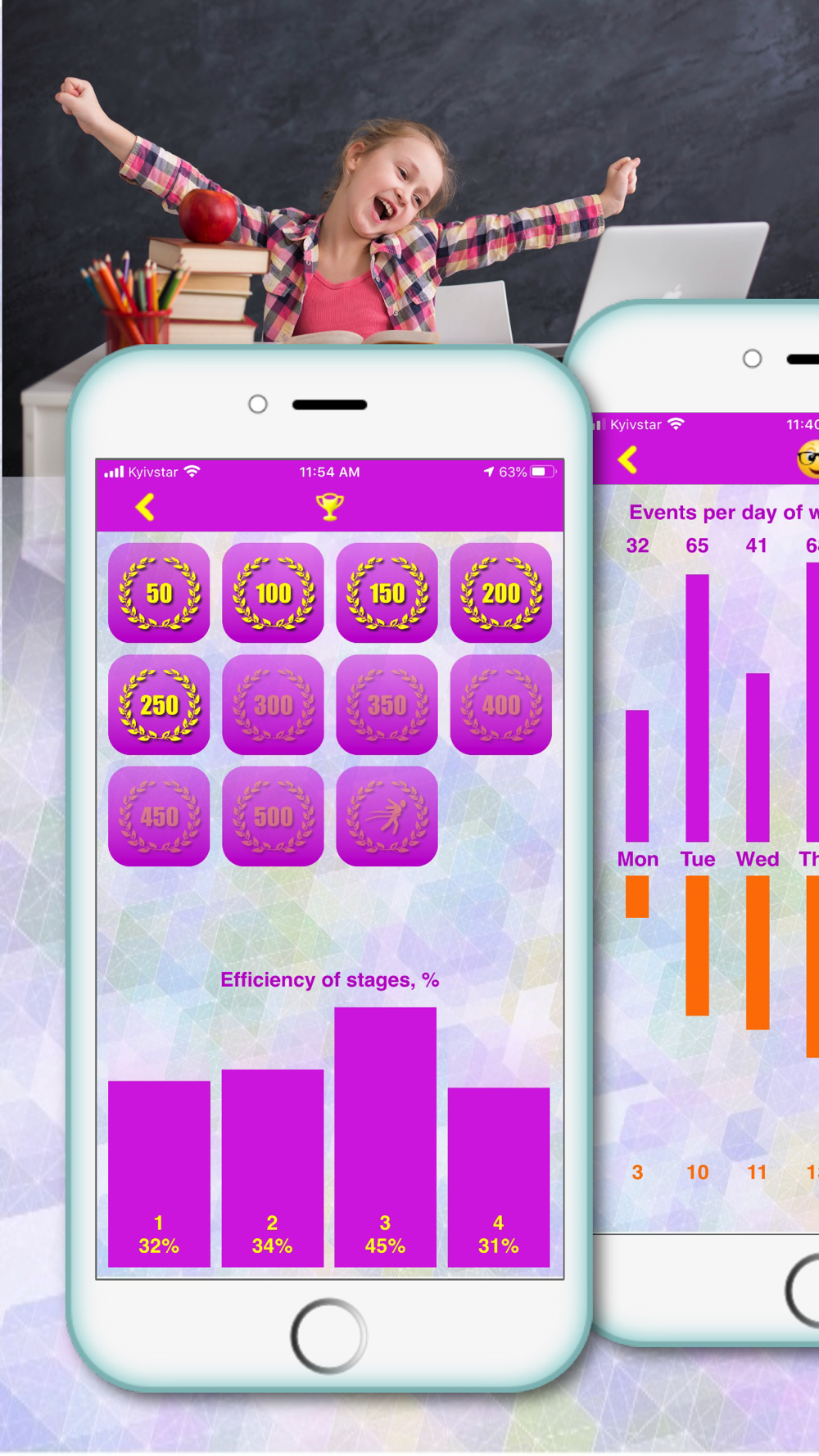 In the "It 's Fine" app, you can not only control the success of your child, but also control the process of education. Creating a schedule of planned events will systematize the child’s actions, notifications will remind you to do something.