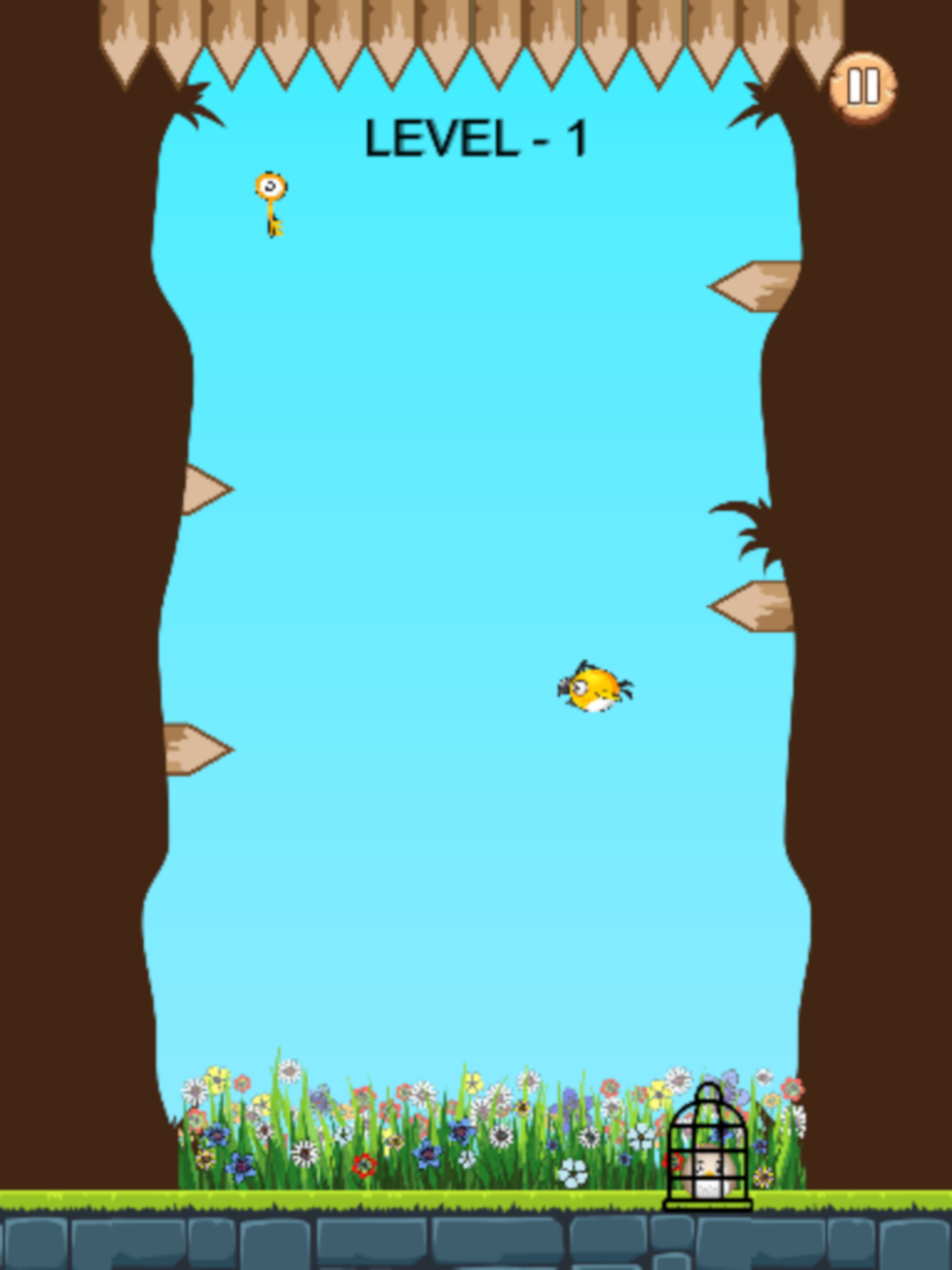 Tap to screen to fly and collect the key. Once the key is collected the cage will be destroyed.