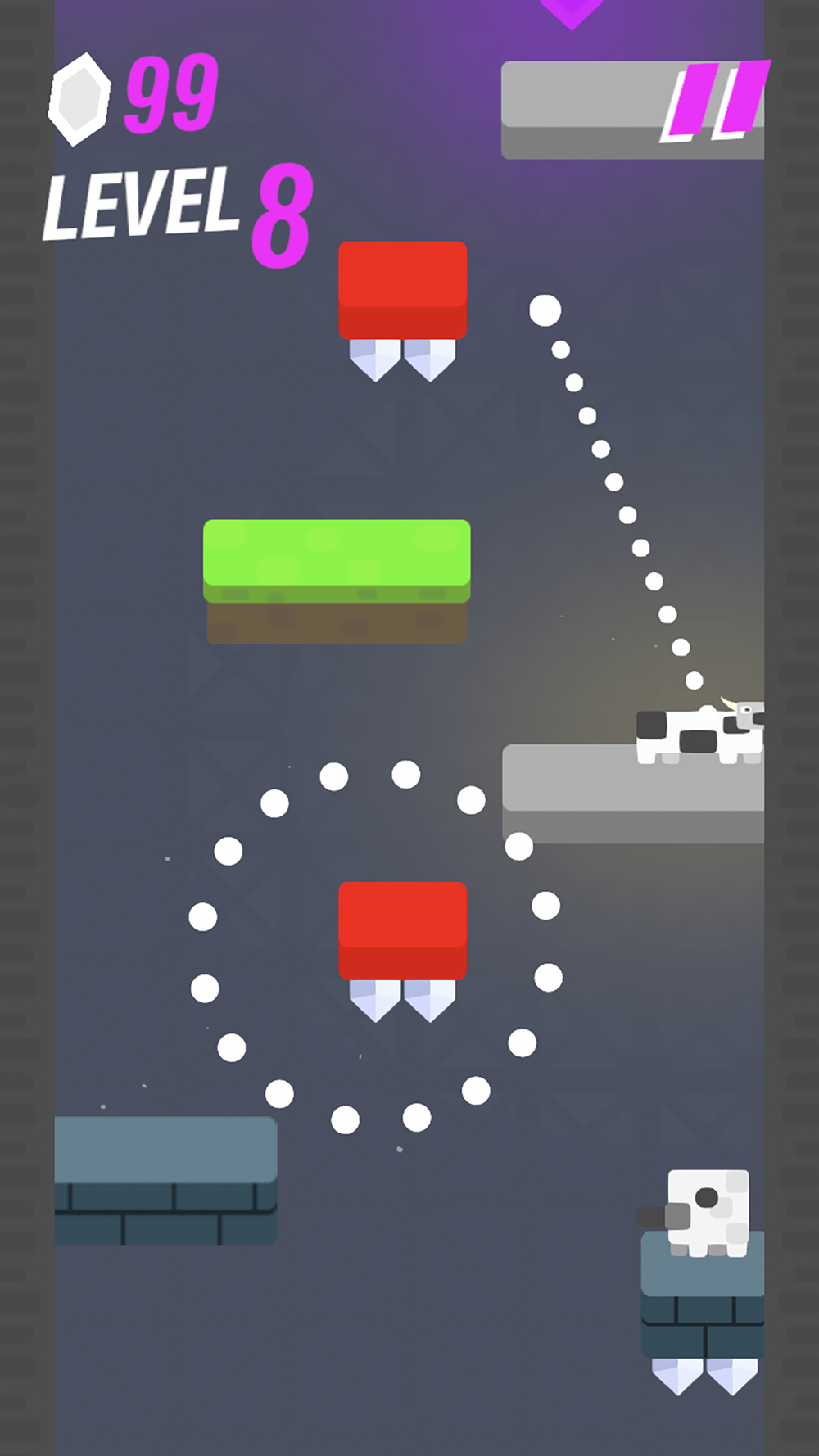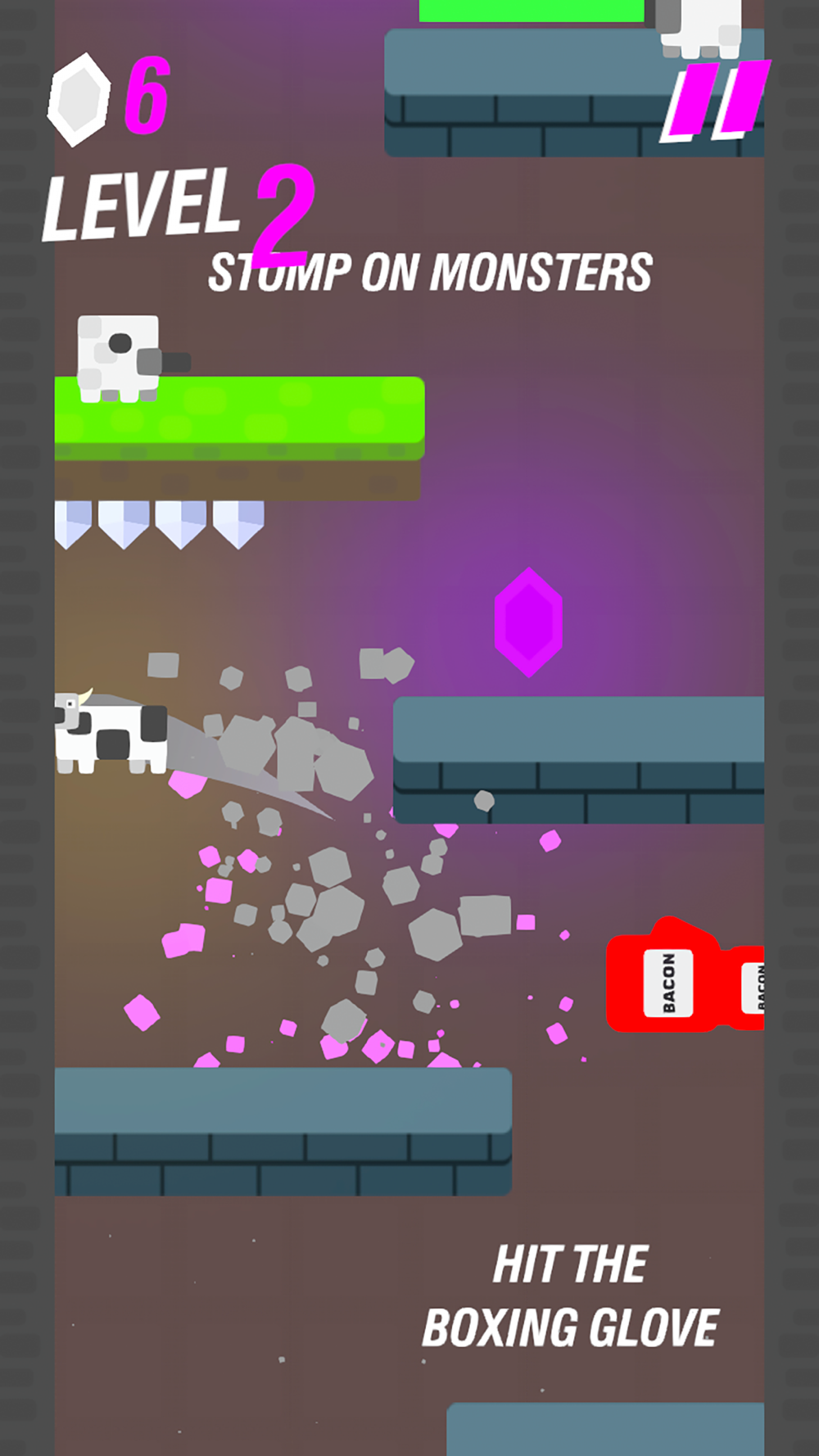 Pull back and launch your way through dungeons where you will stomp on monsters, dodge spikes, and collect gems.