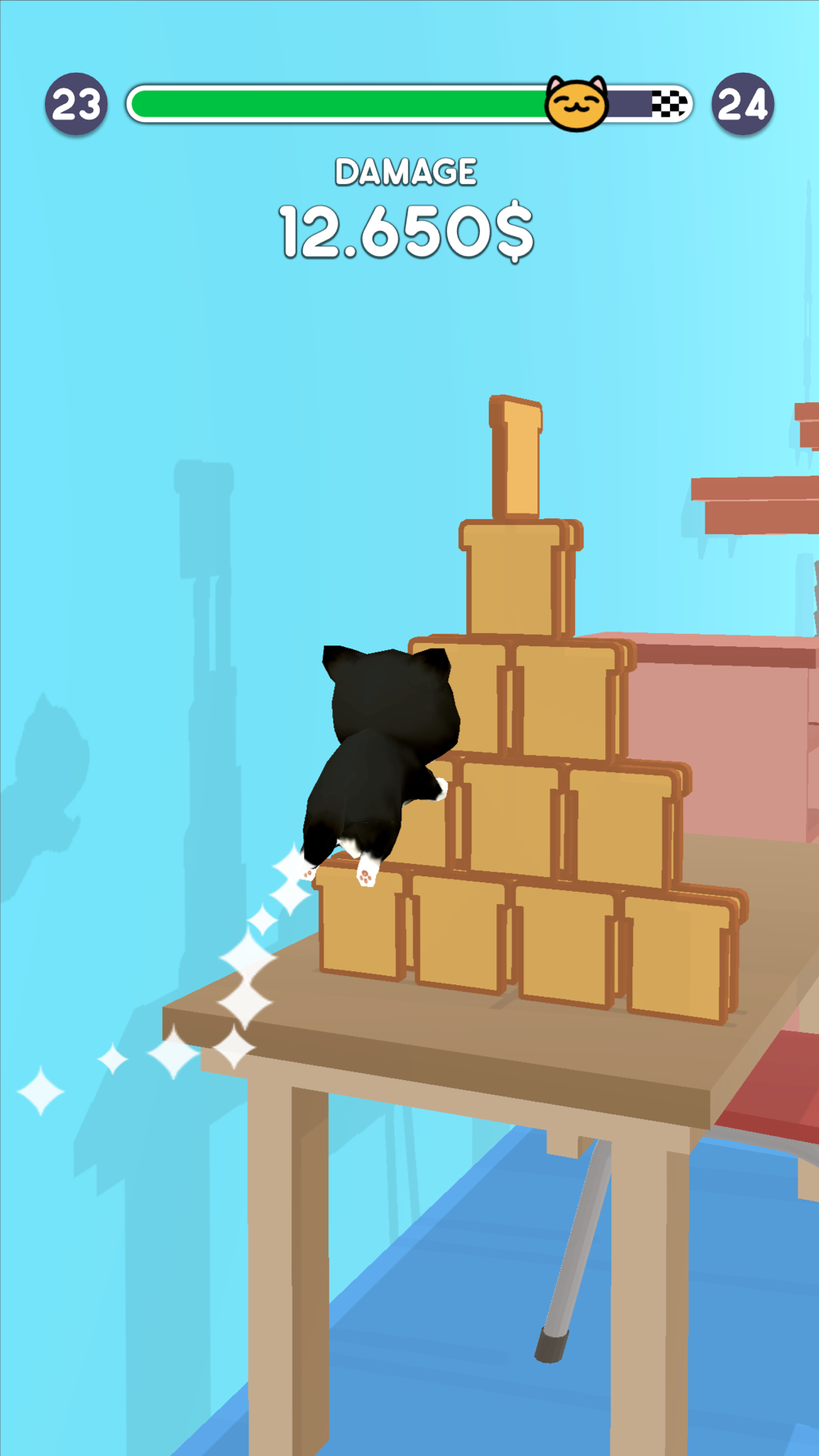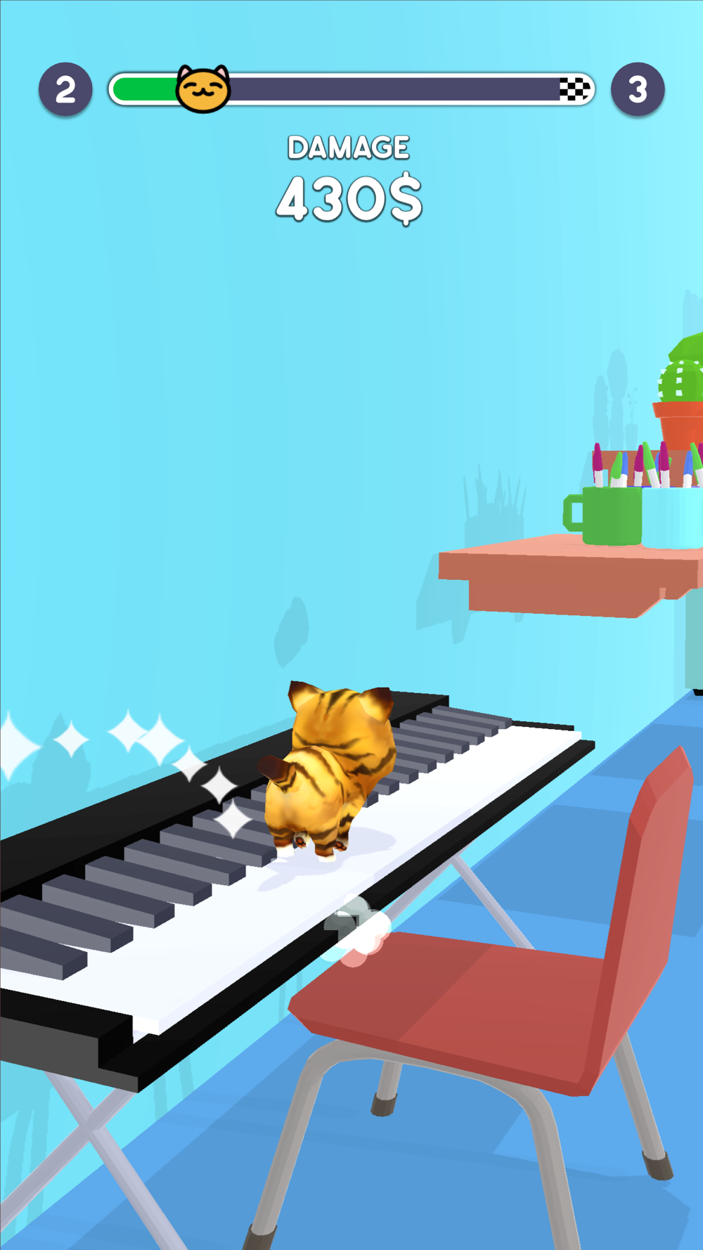 Tap to jump and run across the house while laying waste to the owner’s possessions!