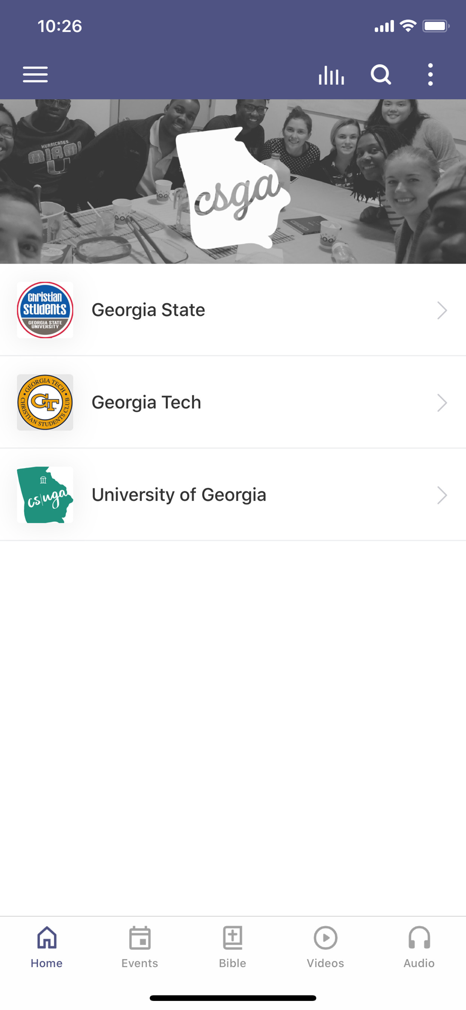 This app will help you grow in your Christian life and get connected with the Christian Students community at the University of Georgia, Georgia State University, and Georgia Tech. With this app you can: