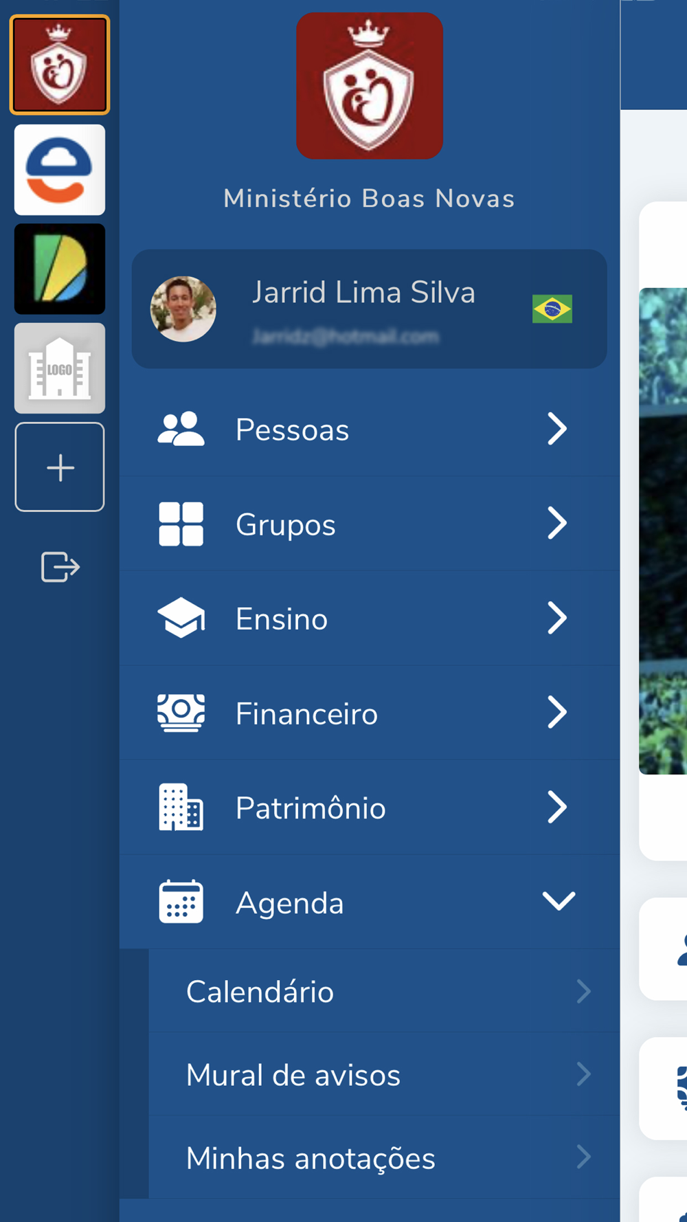 - Veja alguns recursos: Pessoas, Grupos, Financeiro, Agenda, Ensino, Fotos, Vídeos, Patrimônio, Aniversariantes, Cartão pessoal, Estudos, Mural de avisos, Arquivos para download, etc.