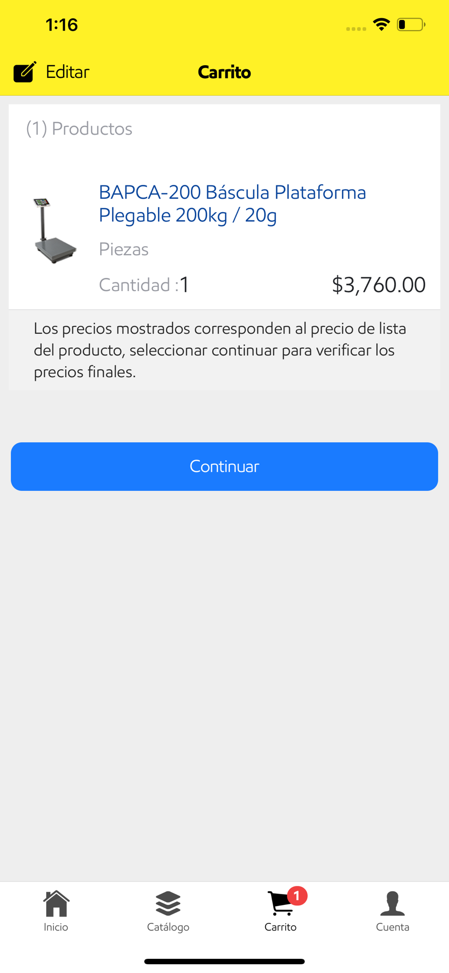 * Carrito de compras.