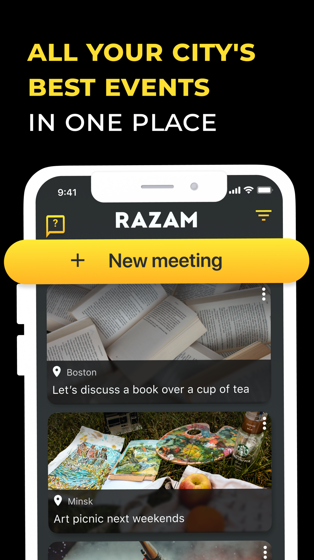 Make your life more active and brighter - find interesting events and meetings in RAZAM!