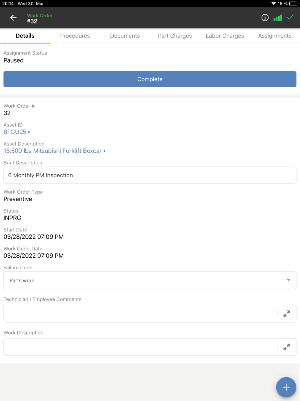 Manage work orders and work requests, book spare parts, track work hours, and much more.