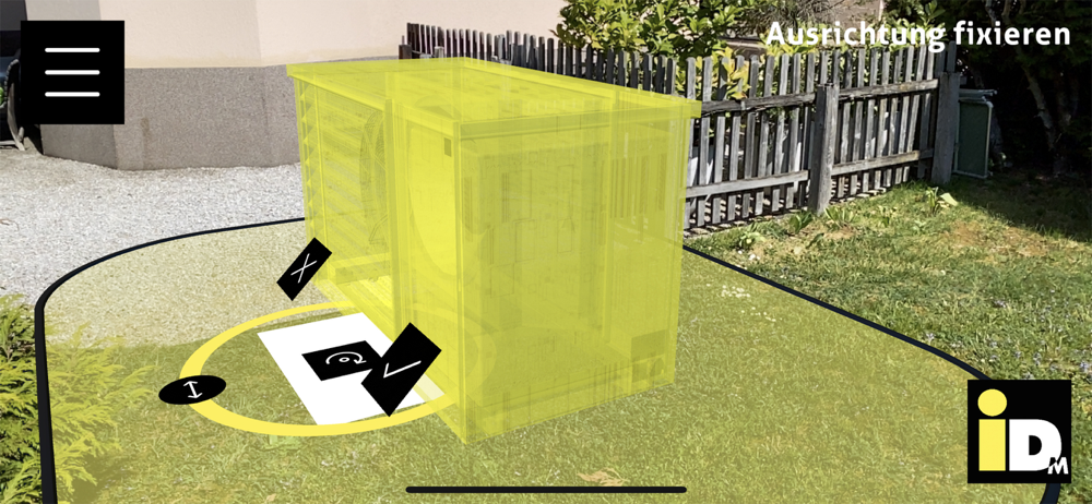 Die iDM Wärmepumpe lässt sich mit wenigen Klicks spielerisch leicht in realer Umgebung platzieren & ausrichten.