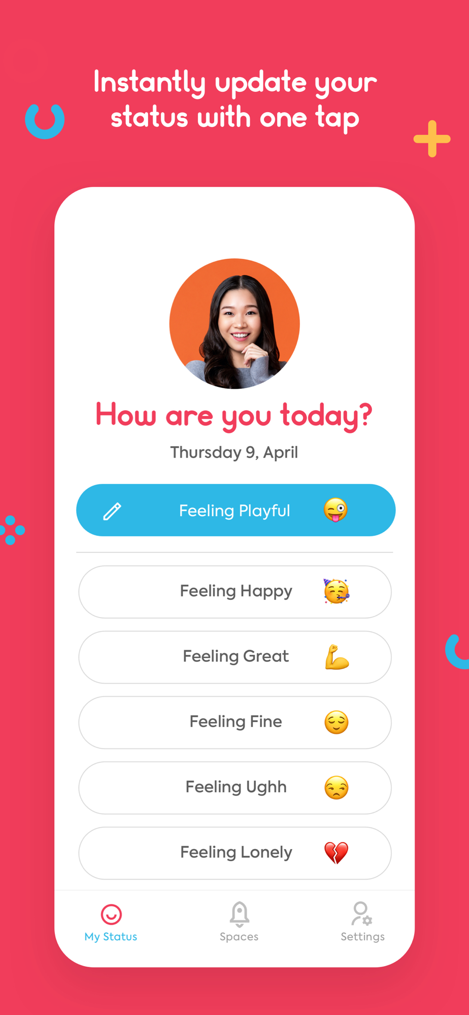 For friends and families spread across the world in different time zones, to friends and families who are in the same city or on the same street, this app makes it easy to know how everyone is feeling that day. From families to sports clubs, businesses to religious groups and friends, this app is for everyone.