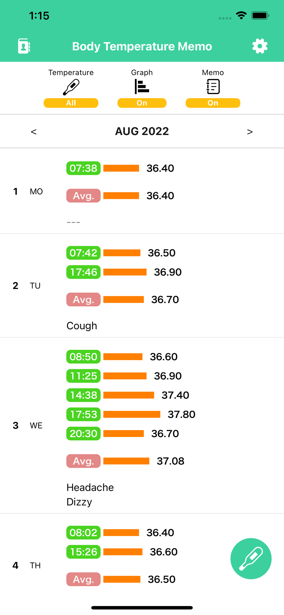 This app does not measure your body temperature like a thermometer. It is an application to record and manage the results of temperature check with a thermometer.