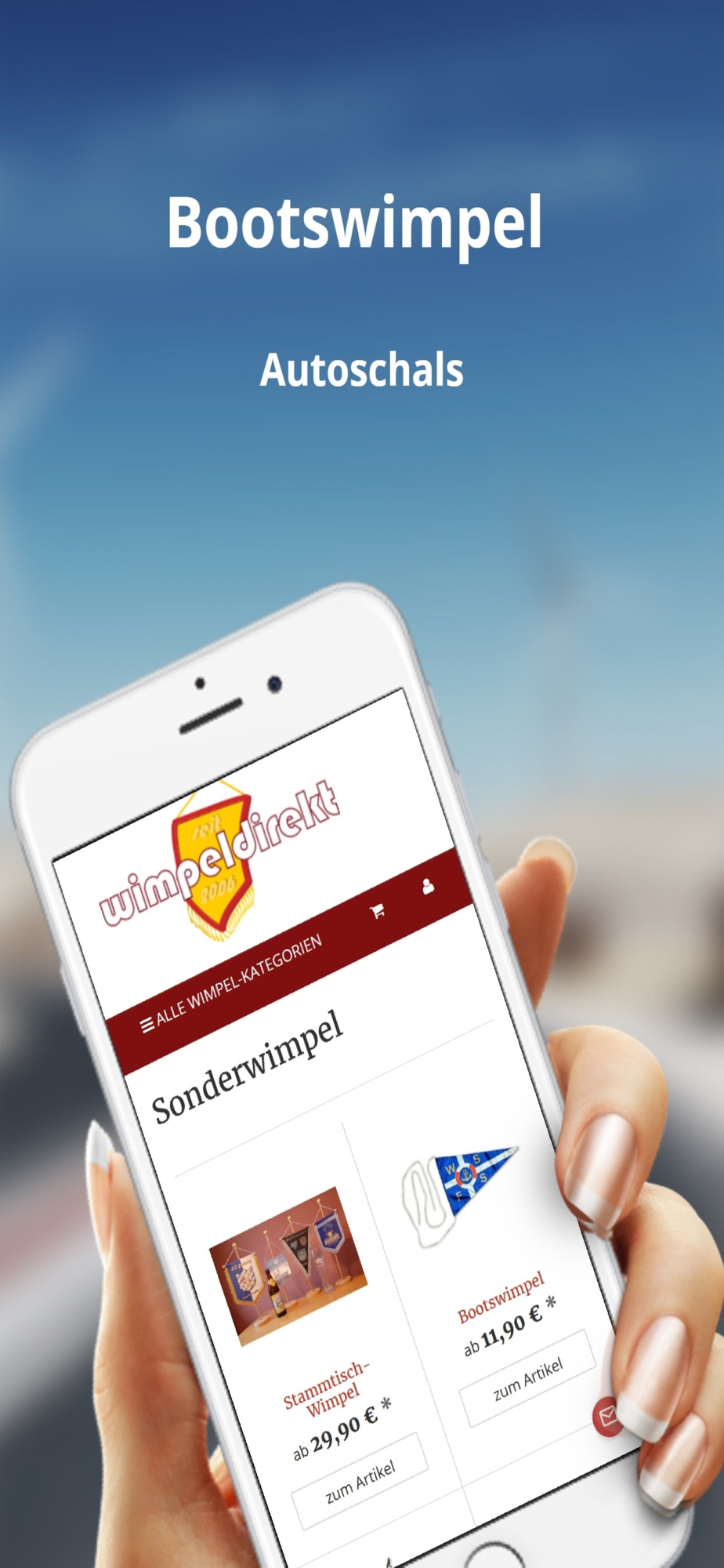 Unser Unternehmen stellt die gewünschten Wimpel und Fanartikel in eigener Produktion her. Die Wimpel werden in verschiedenen Größen (M/L/XL) und Formaten (Dreieck, Fünfeck), aber auch Sonderformaten angeboten. Je nach Wahl bedrucken wir die Wimpel einseitig oder beidseitig bedrucken. Die gewünschten Motive werden auf glänzenden Satinstoff gepresst. Umnäht werden die Wimpel, je nach Kundenwunsch, mit einer Kordel oder Franse; wobei es verschiedene Farben gibt. Sofern gewünscht, liefern wir zu dem Wimpel auch einen Wimpelständer. Somit können Sie den Wimpel als Tischwimpel nutzen, um ihn z. B. bei einer Vereinssitzung zu präsentieren. Die Wimpel werden ausschließlich nach Kundenwunsch hergestellt und produziert, damit auch eigene Vorstellungen in den Entwurf einfließen.