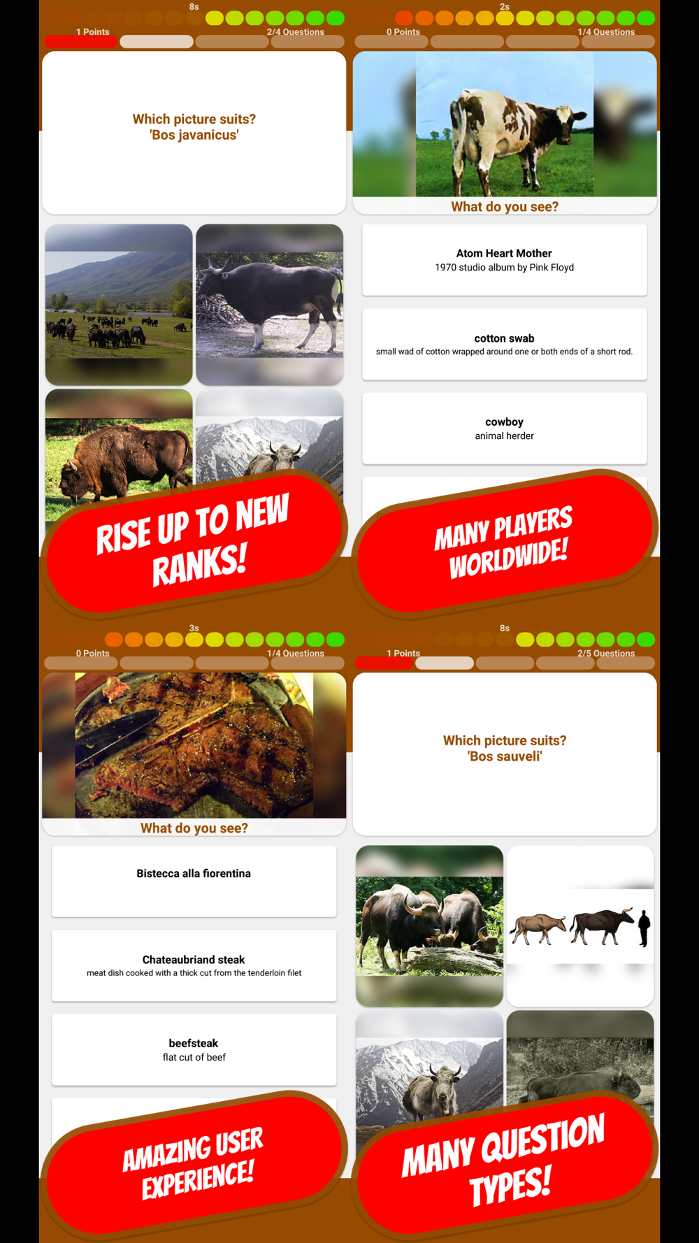 You’ll learn much about Bovine while answering quiz questions! Rise up to new levels!
