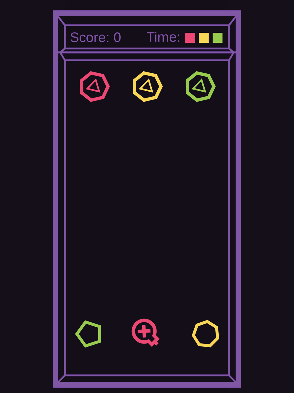 Match shapes by color. But be careful; make sure to avoid bombs and the walls! Challenge yourself to improve your reflexes and beat your high score!