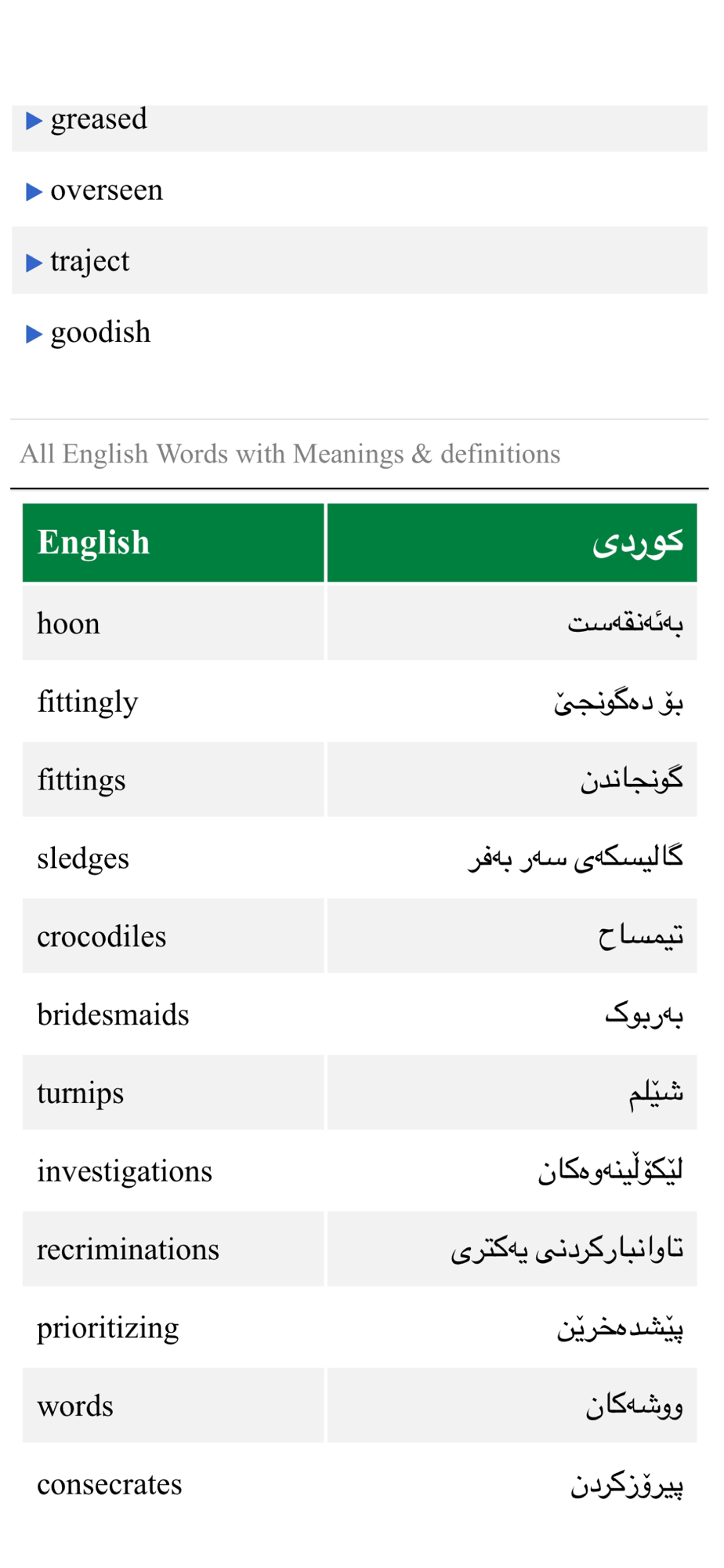 English To Kurdish, this is the most Comprehensive English Kurdish dictionary.