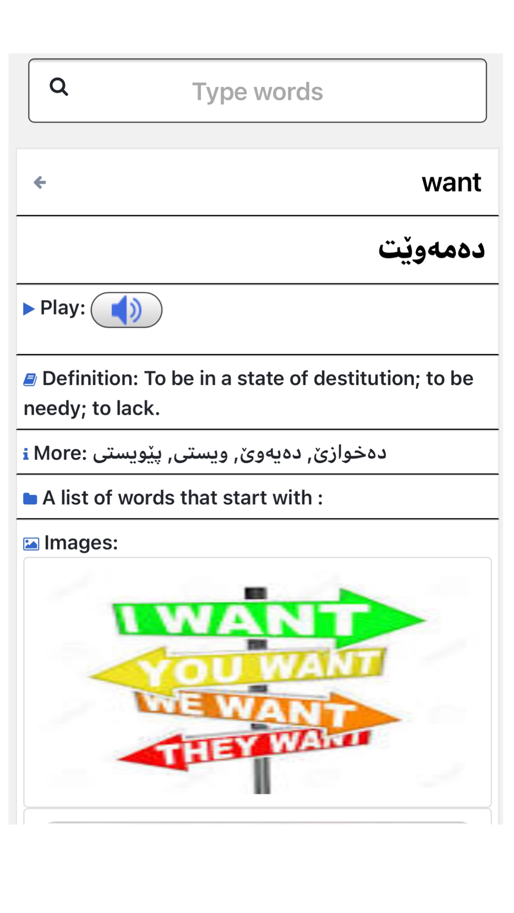 We provide millions of English definitions, spellings, pictures, example sentences, and Kurdish translation.