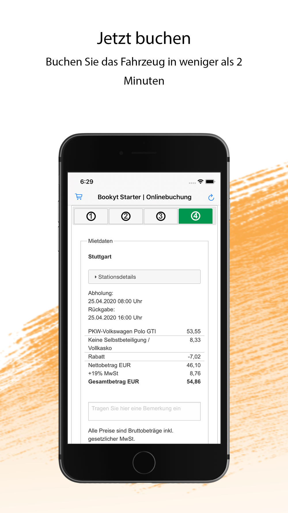 Geben Sie eine Reservierung bei Bookyt Starter ein mit der Bookyt Starter Kundenapp.