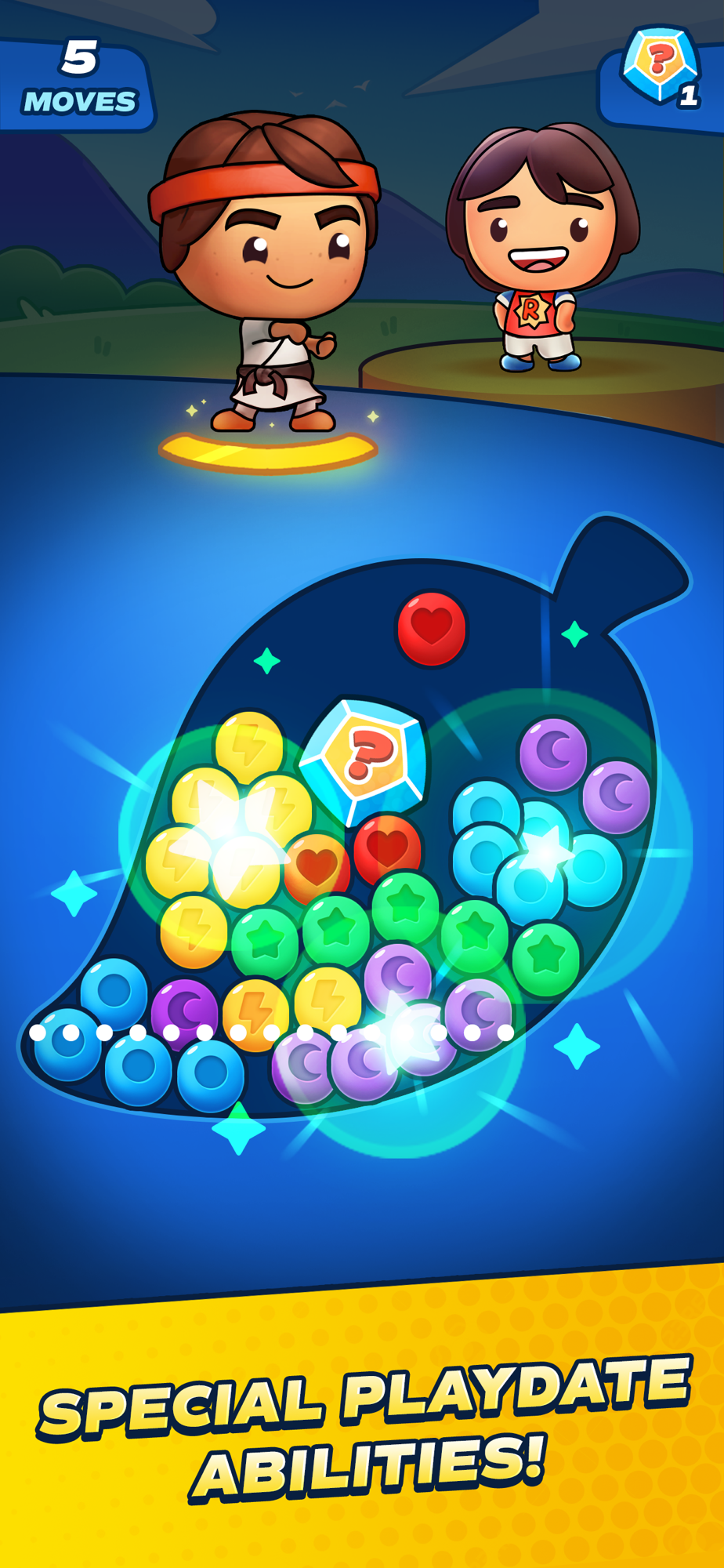 Help Ryan and his family discover his next mystery playdate by solving fun puzzles. Match colors, earn power-ups and blast through each level to unlock new guests and collect them in your guest book. Each playdate brings a special power-up to help you solve the next challenge. Unlock mystery boxes, spin the mystery wheel and drop the hintamajig – just like in the popular TV show!