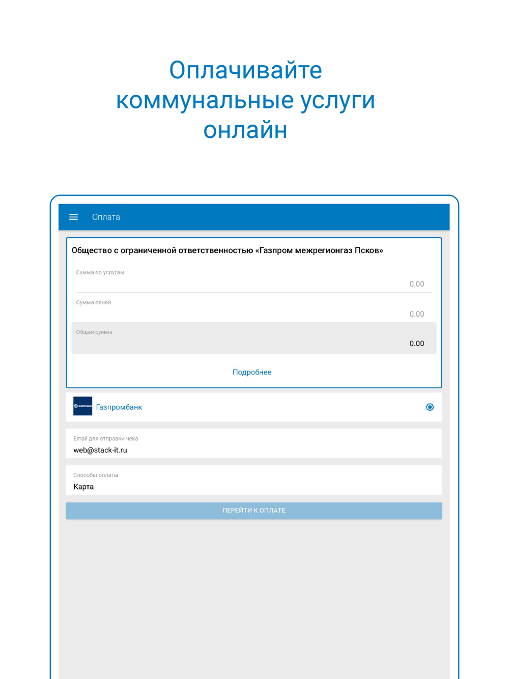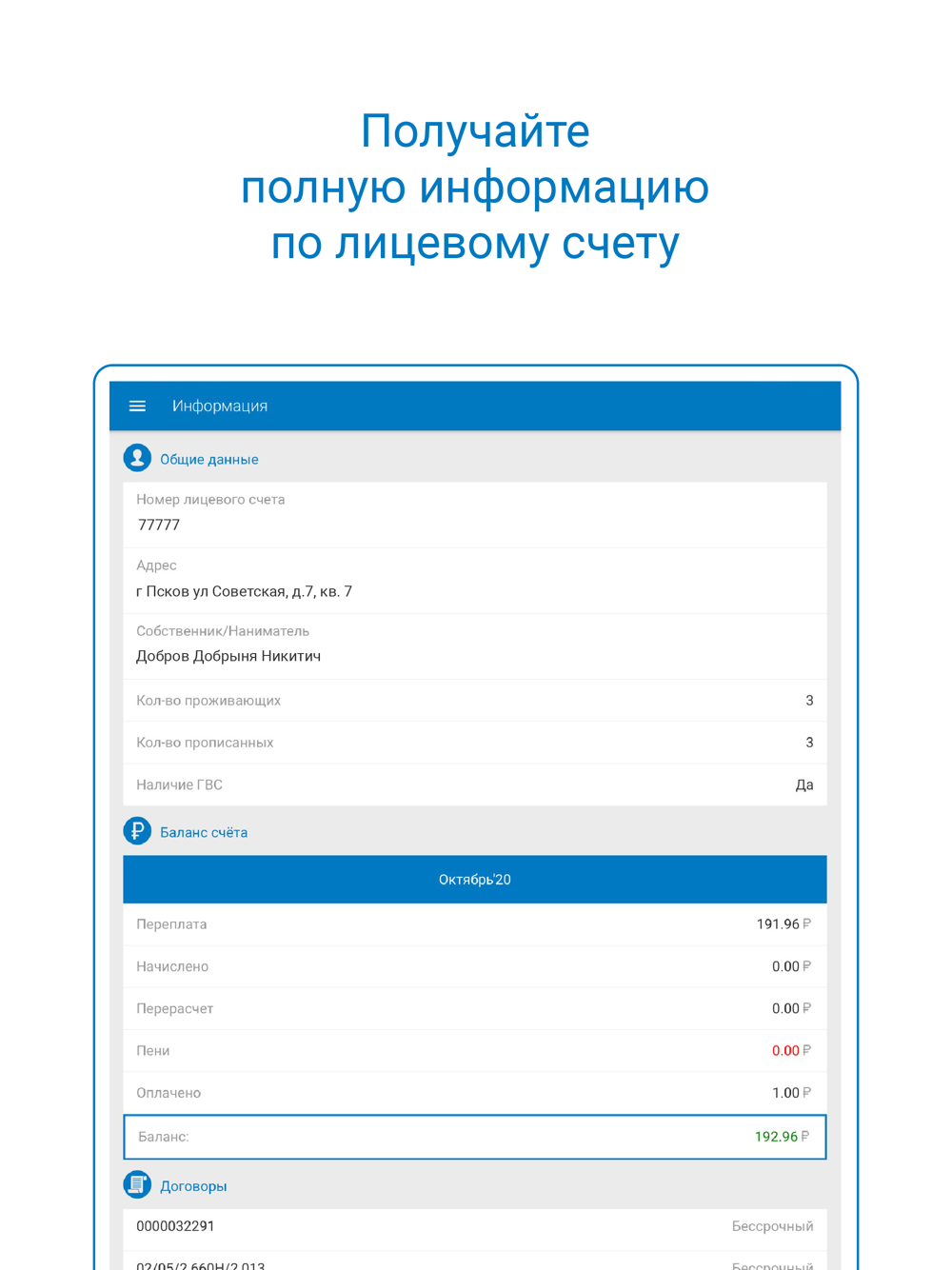 • Получить актуальную квитанцию, а также квитанции прошлых периодов с возможность сохранить квитанцию себе на устройство в формате .pdf