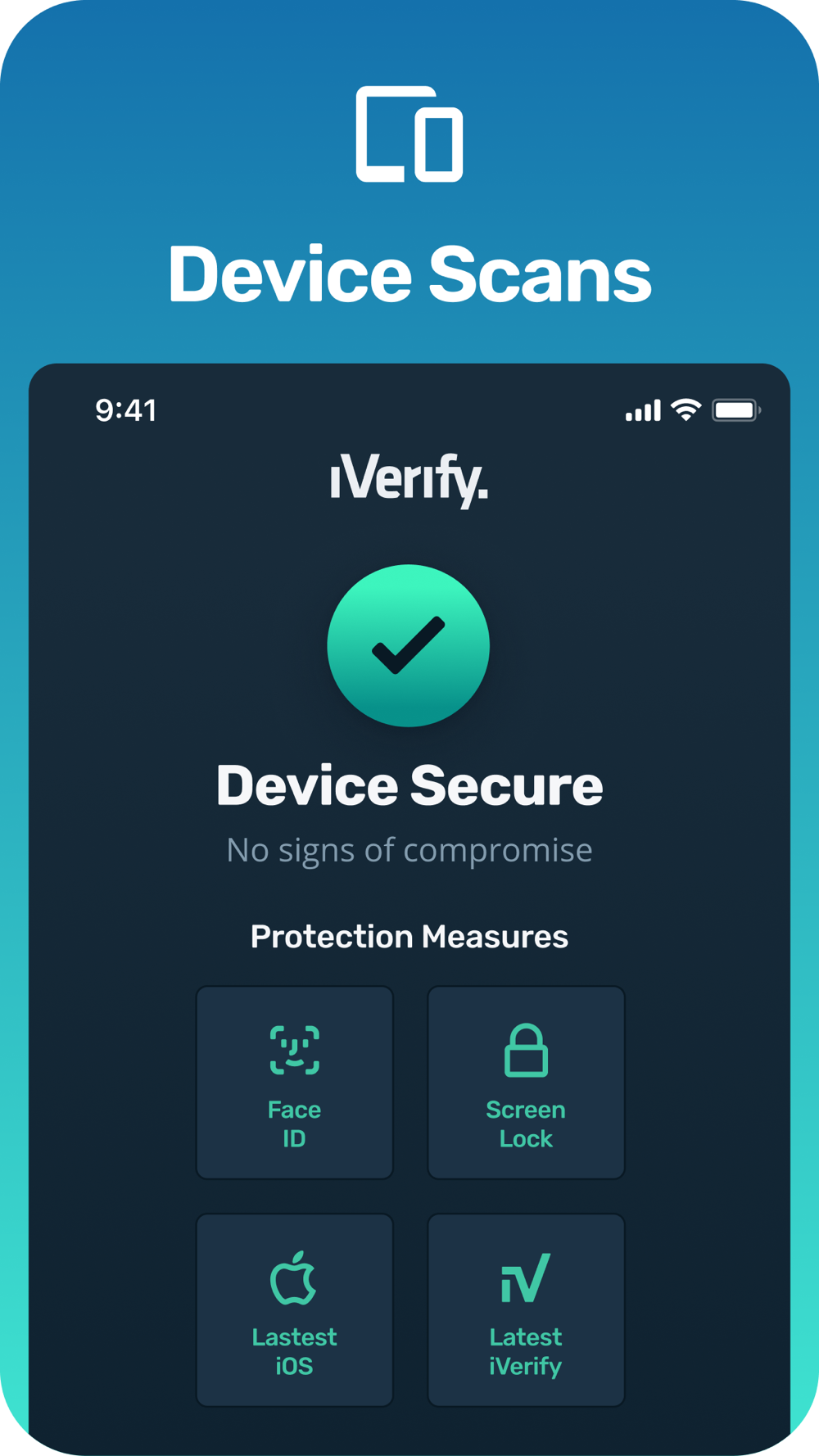 iVerify for Organizations is your organization's security toolkit. Use iVerify to manage the security of your iOS devices and detect modifications to your smartphone. iVerify makes it easy to manage the security of your accounts and online presence with simple instructional guides.