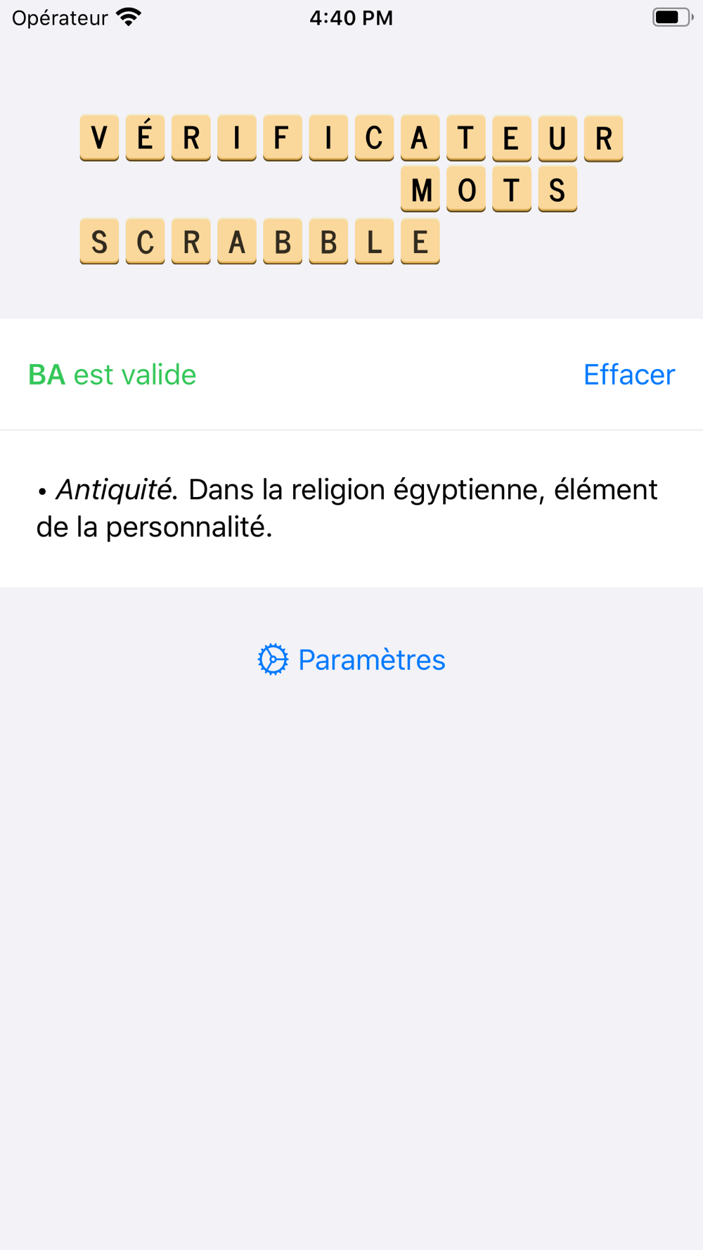Vérificateur mots du Scrabble® est facile à utiliser même en mode hors ligne et avec les définitions complètes.