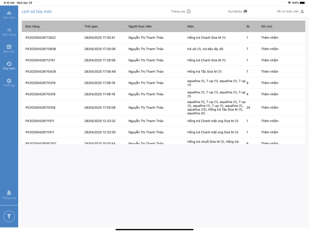 Suno F&B hỗ trợ tất đồng bộ giữa các thiết bị như điện thoại, tablet và máy in hoá đơn… Giúp bạn bán hàng nhanh chóng, chuyên nghiệp và chính xác hơn.