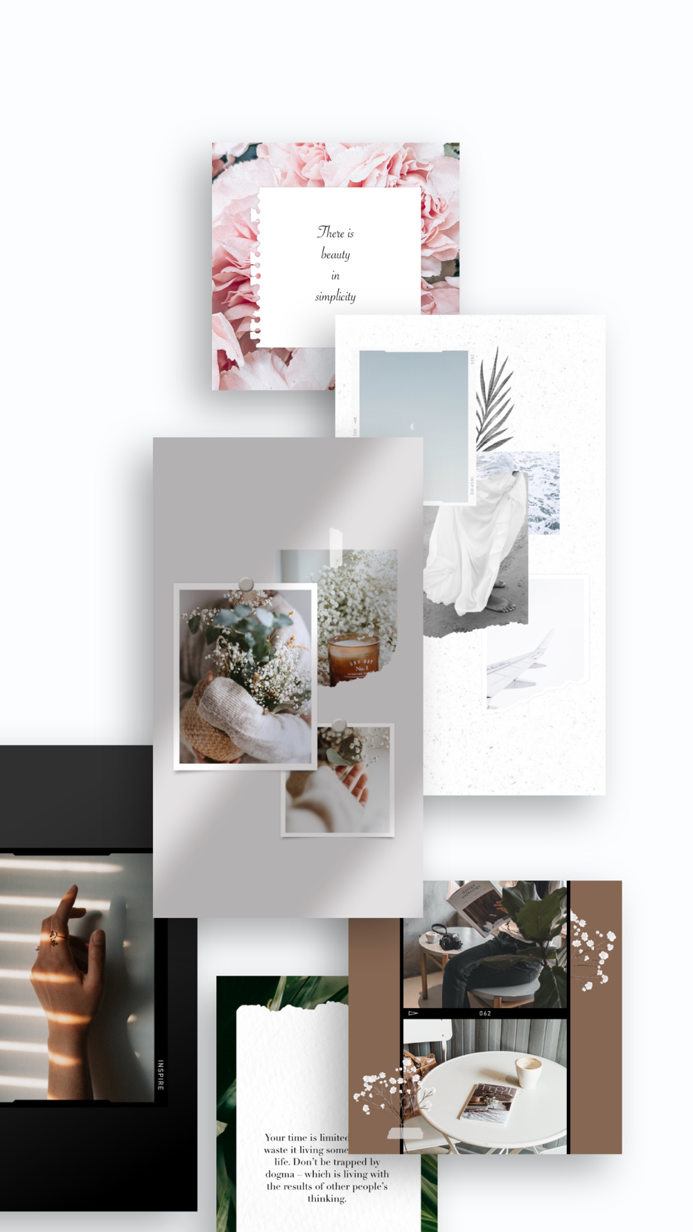 Inspire is a simple graphic design tool. Combine images, stickers and text to create collages or Instagram Stories.