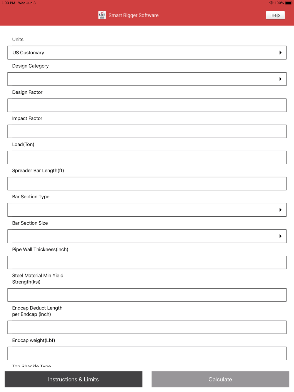 Spreader Bar App calculates loading on the spreader bar pipe, slings, and shackles for a wide range of lifting configurations while calculating and reporting ASME BTH-1 calculations. Three options of Crosby shackle types are available to choose from in this version of the app, as well as three options of slings, 1-Part Mechanical Spliced IWRC (EIPS, 6X19), STRAND Mech. Splice Grommet IWRC (EIPS, 6X19), and Polyester Endless Round slings, for a vertical and vertical basket configuration. Provides spreader bar capacity charting, and report generation ready to email results.