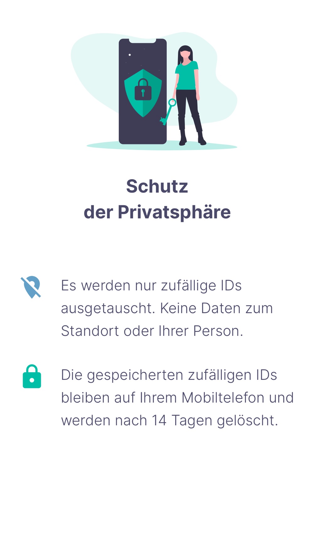 Die App misst anonym die Zeitdauer und den Abstand zu anderen Mobiltelefonen. Sie zeichnet auf, wenn ein enger Kontakt bestand (näher als 1,5 Meter und insgesamt über einen Tag länger als 15 Minuten). Dann nämlich besteht die Möglichkeit, dass das Virus übertragen wurde.