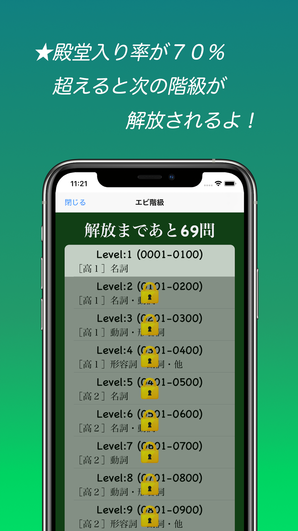 殿堂入り率が70%を超えると次の階級が解放され問題数が増加!