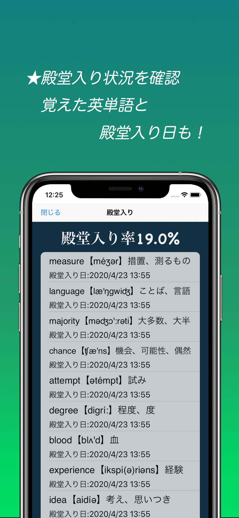 ゲーム感覚でテンポよく問題を解き、暗記した問題は殿堂入りに登録され、登録数が増えると新たな問題が出現します。