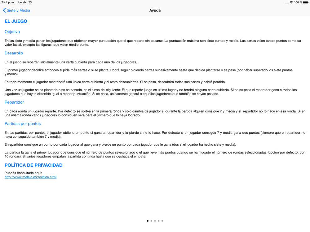 - Juega a la Siete y Media contra varias CPU (de 2 a 5 jugadores)
