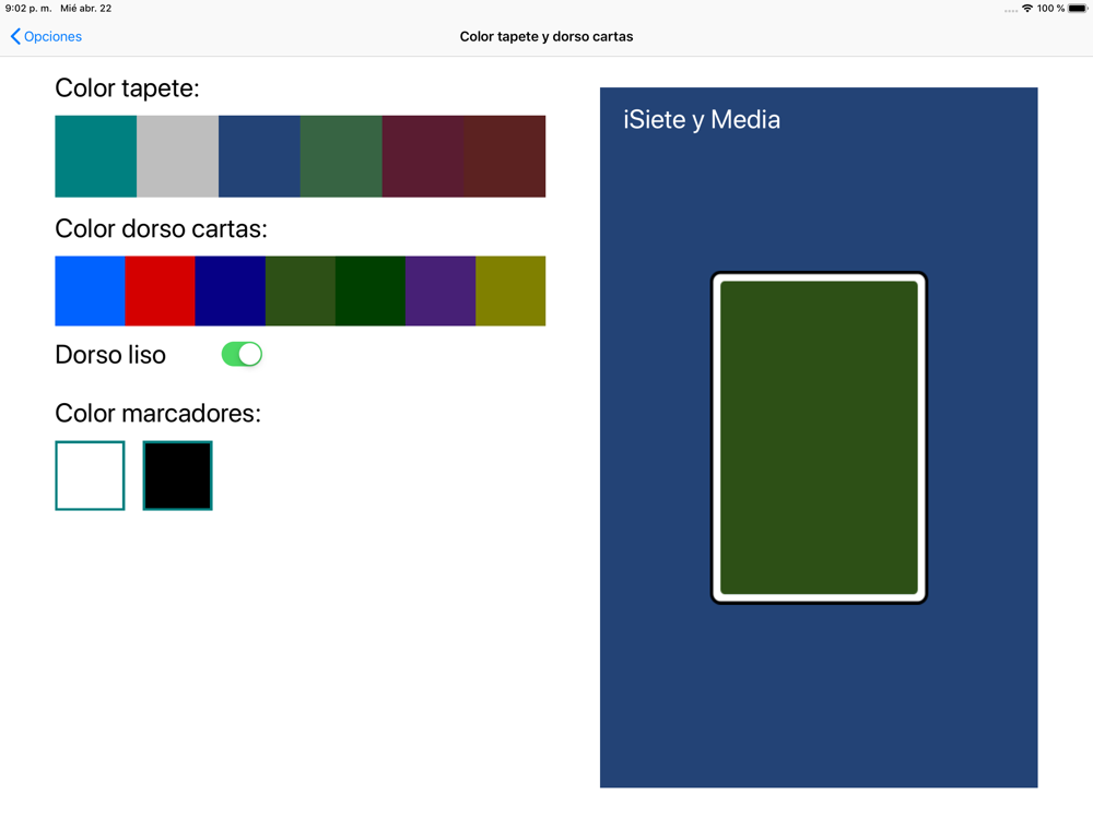 - Configurable: Tamaño cartas, color baraja, sonido, velocidad, marcadores, color tapete y marcadores, tamaño números cartas,...