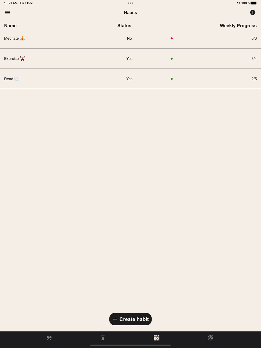 As Aristotle said, "We are what we repeatedly do." That's why we offer you a tool to track and monitor whether you're truly sticking to the habits you've set for yourself.
