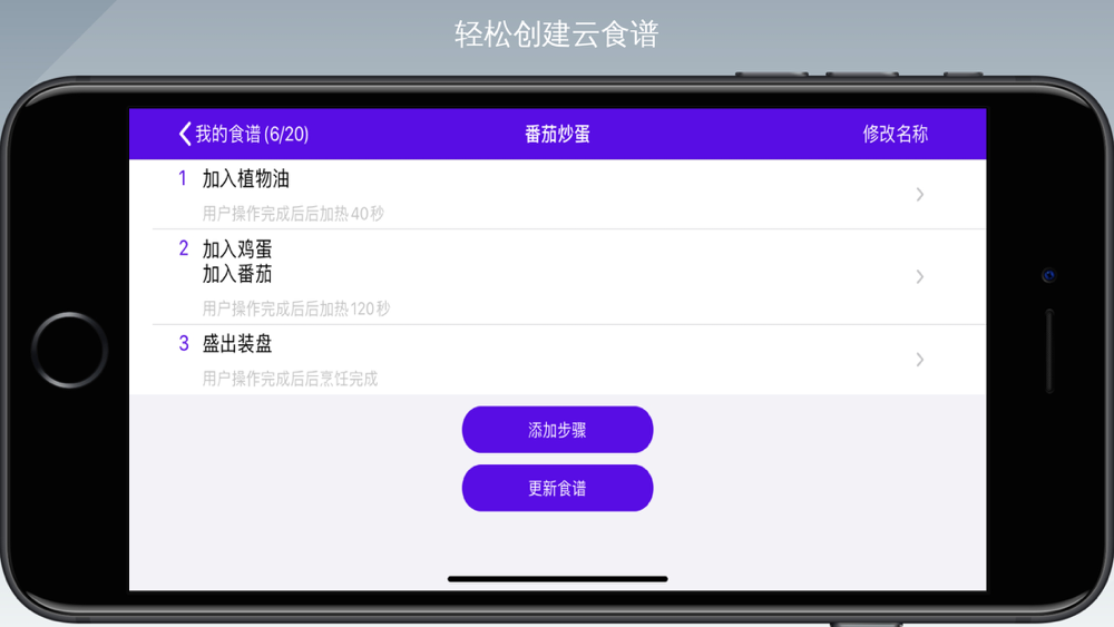 【烹饪步骤提醒】烹饪过程中,每一步操作步骤均占屏显示,同步语音播报提醒,语音可根据实景要求,外接蓝牙扩音设备,步骤没有得到“确认”,设备功率始终由程序控制恒定,防止糊锅等意外;