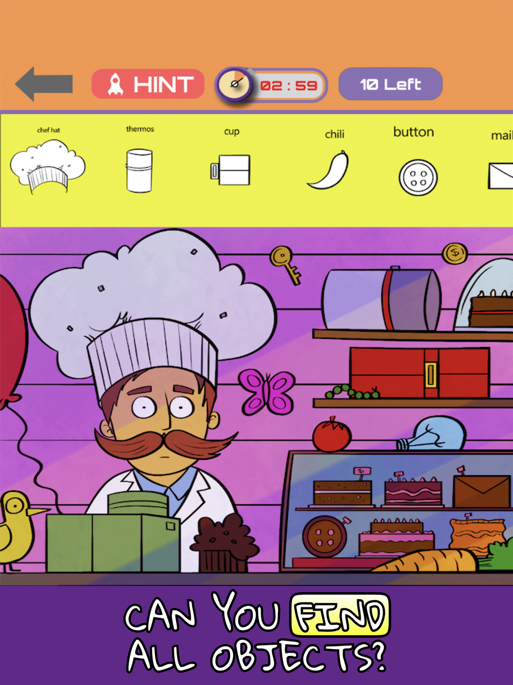 Search for hidden treasures in ancient Egypt, detect marine animals in underwater worlds and search for delicious cakes in a bakery.