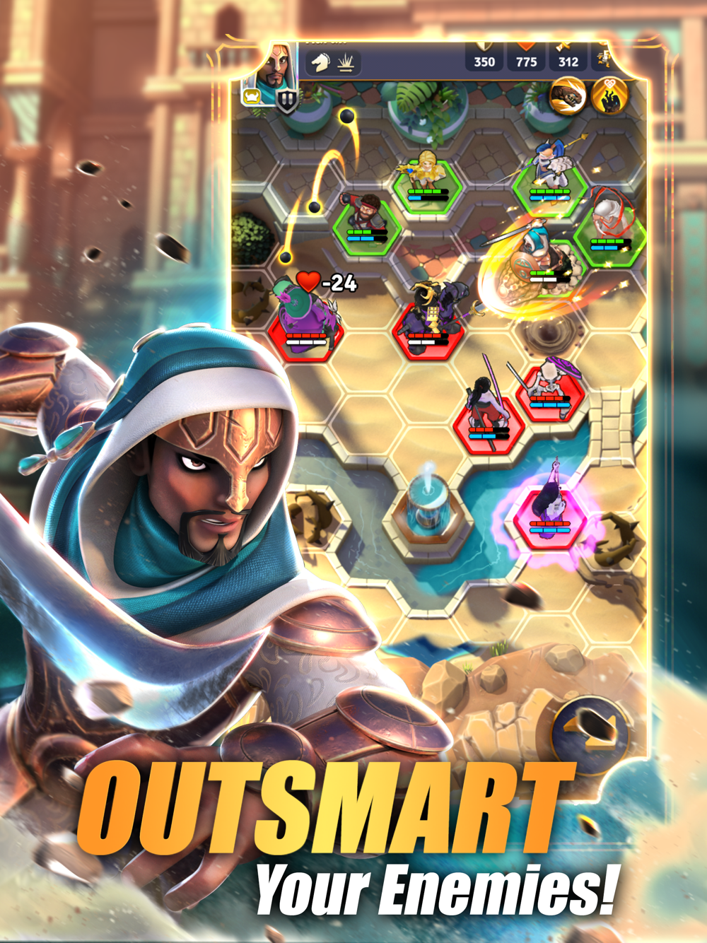 Make use of the terrain and the specific strengths of your heroes to lead them towards victory!