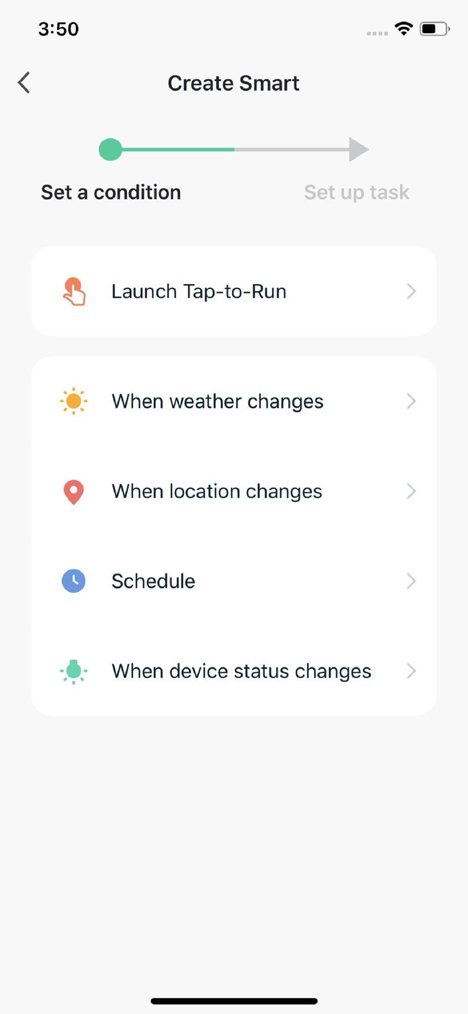• Devices automatically start/stop working based on pre-defined temperature, location, and time.