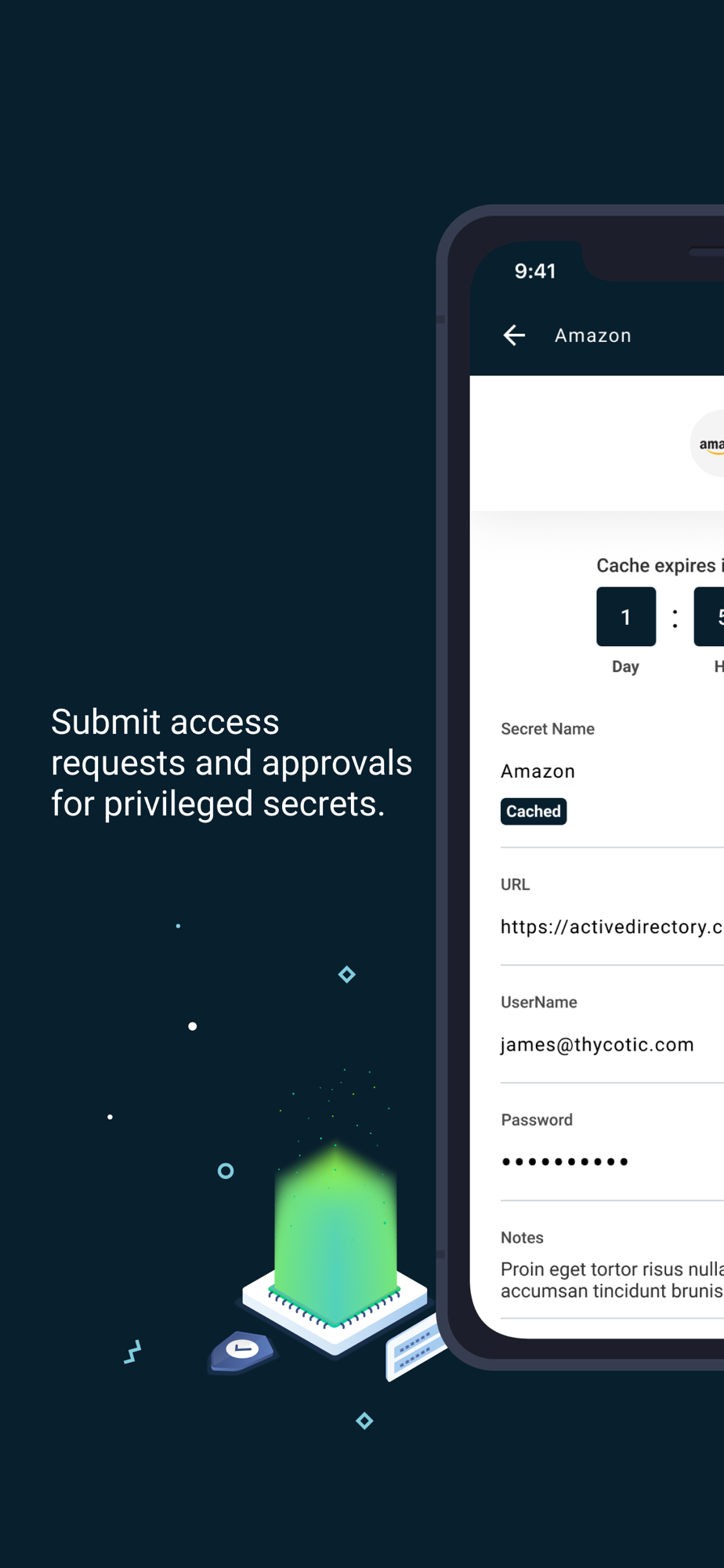 Secret Server Mobile provides remote access to secrets from Thycotic Secret Server or Secret Server Cloud