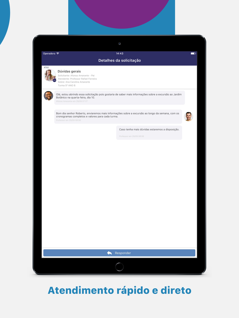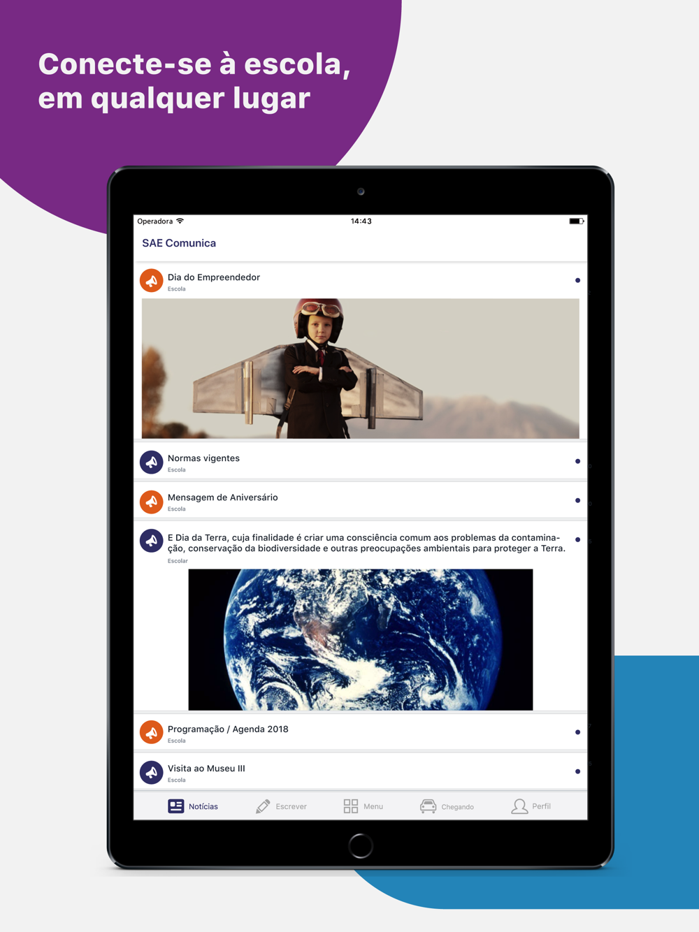 Com este aplicativo, os pais, responsáveis e professores poderão receber as últimas informações da escola, as notícias do dia a dia do seus filhos e o calendário de atividades escolares.