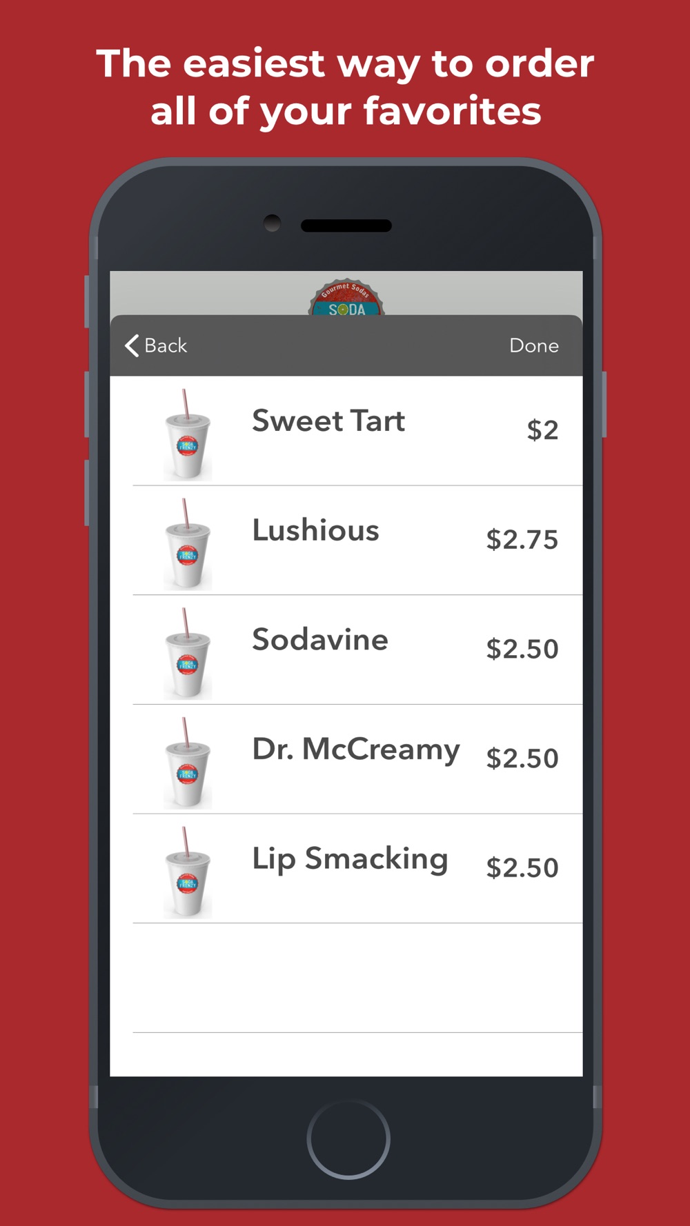 Welcome to the Soda Frenzy app. The fastest way to satisfy your craving for tasty treats and mind blowing mixed soda drinks.