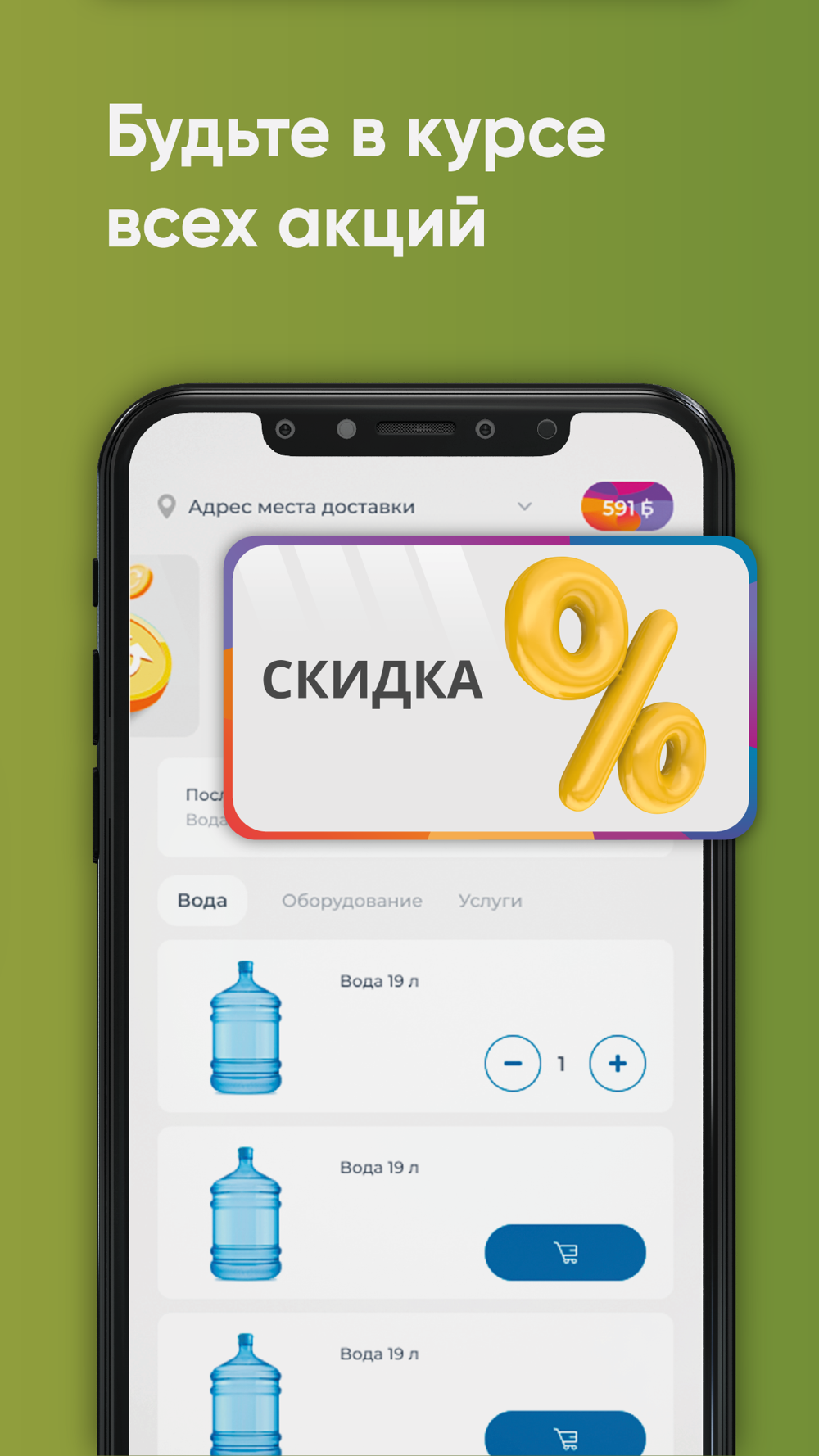 Скачайте бесплатное приложение на телефон и заказывайте чистую воду в удобное время!