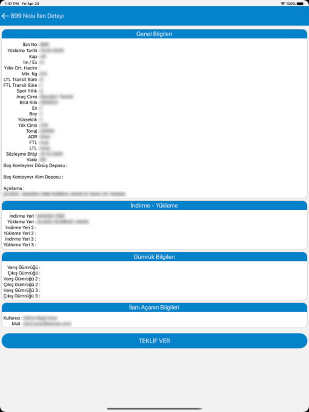 Barsan Global Lojistik şirketi ile çalışan tedarikçilerin giriş yaparak barsan tarafından verilen ilanlara teklif verebilirler. hızlı şekilde işleme alınmaktadır.
