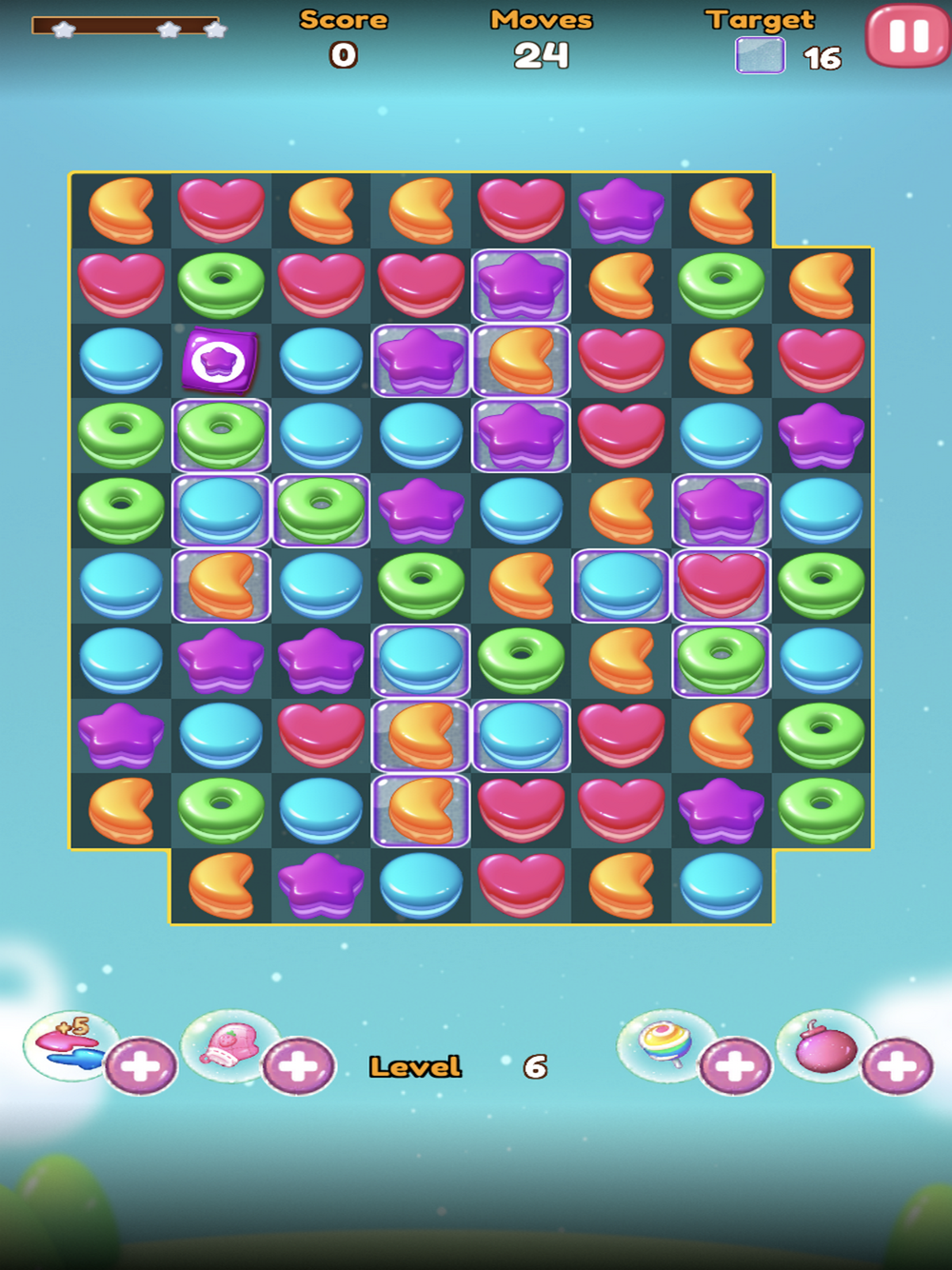 * مطابقة 3 حلويات من نوع واحد واللون تخلق البوب الذي يزيلها من اللوحة;