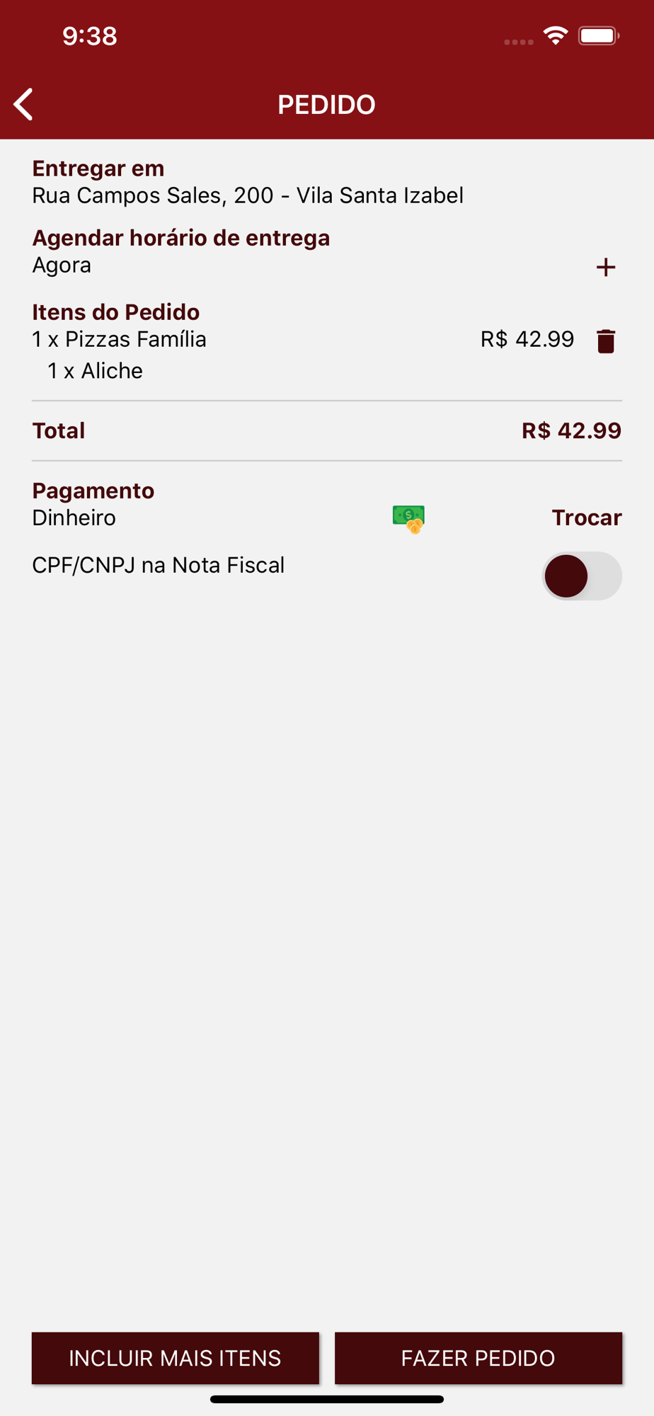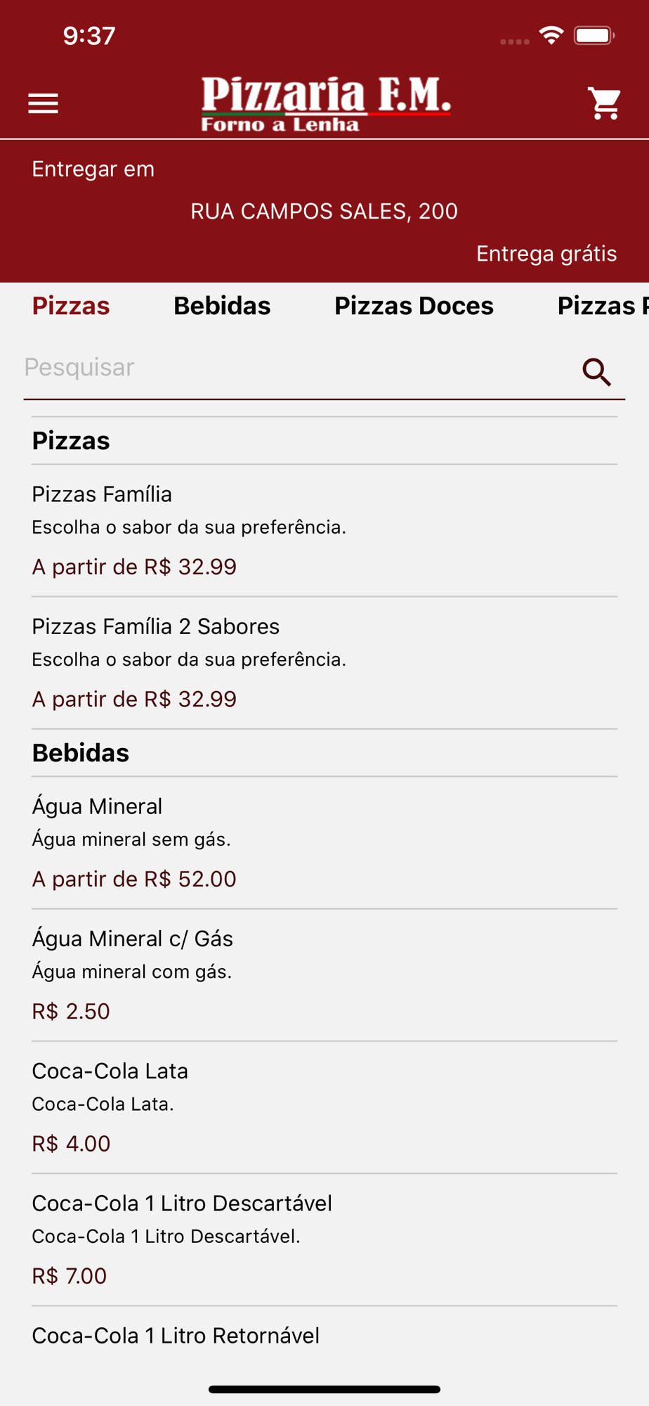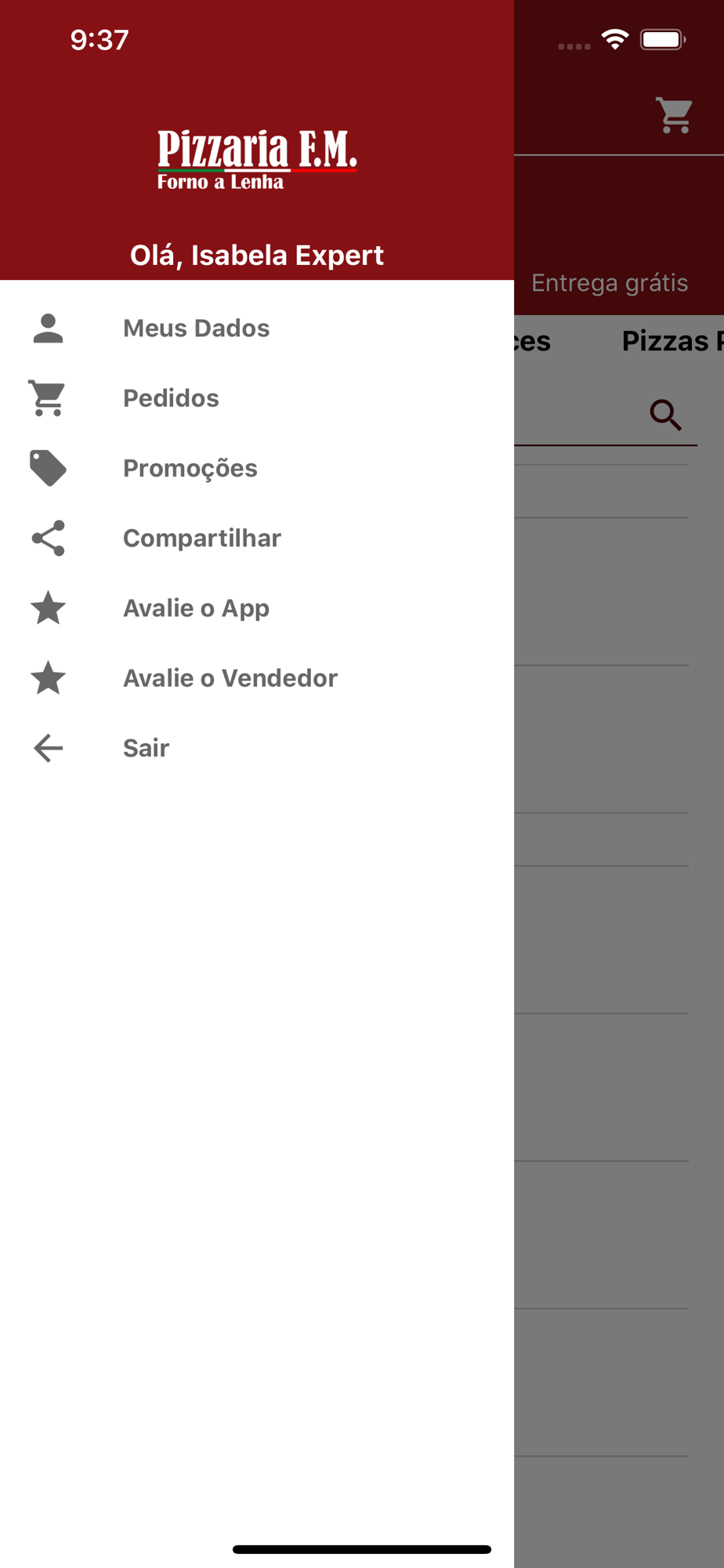 App de vendas da pizzaria F.M.