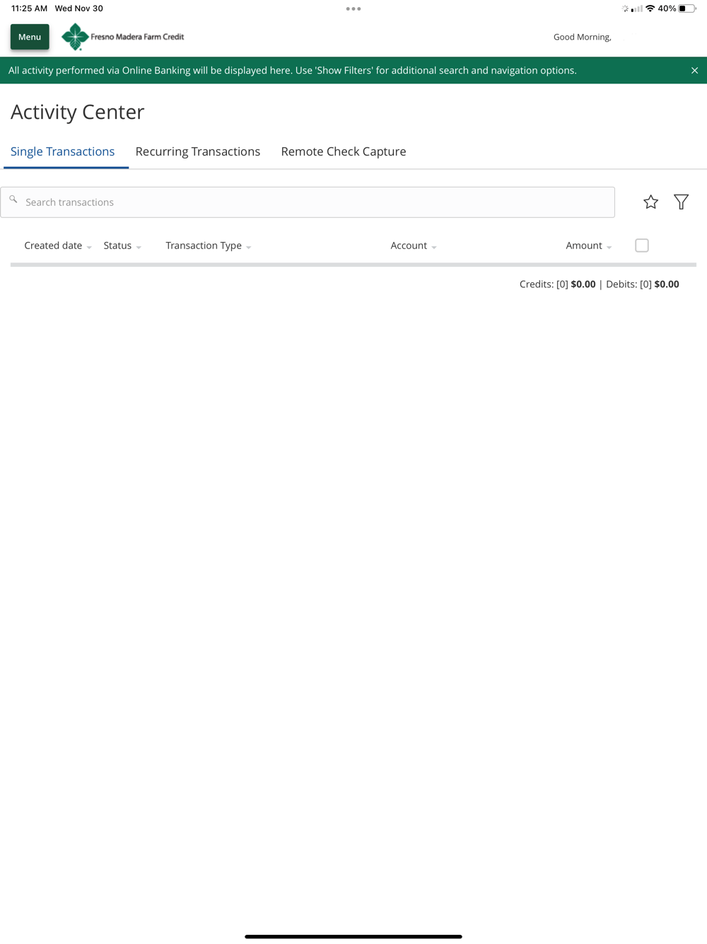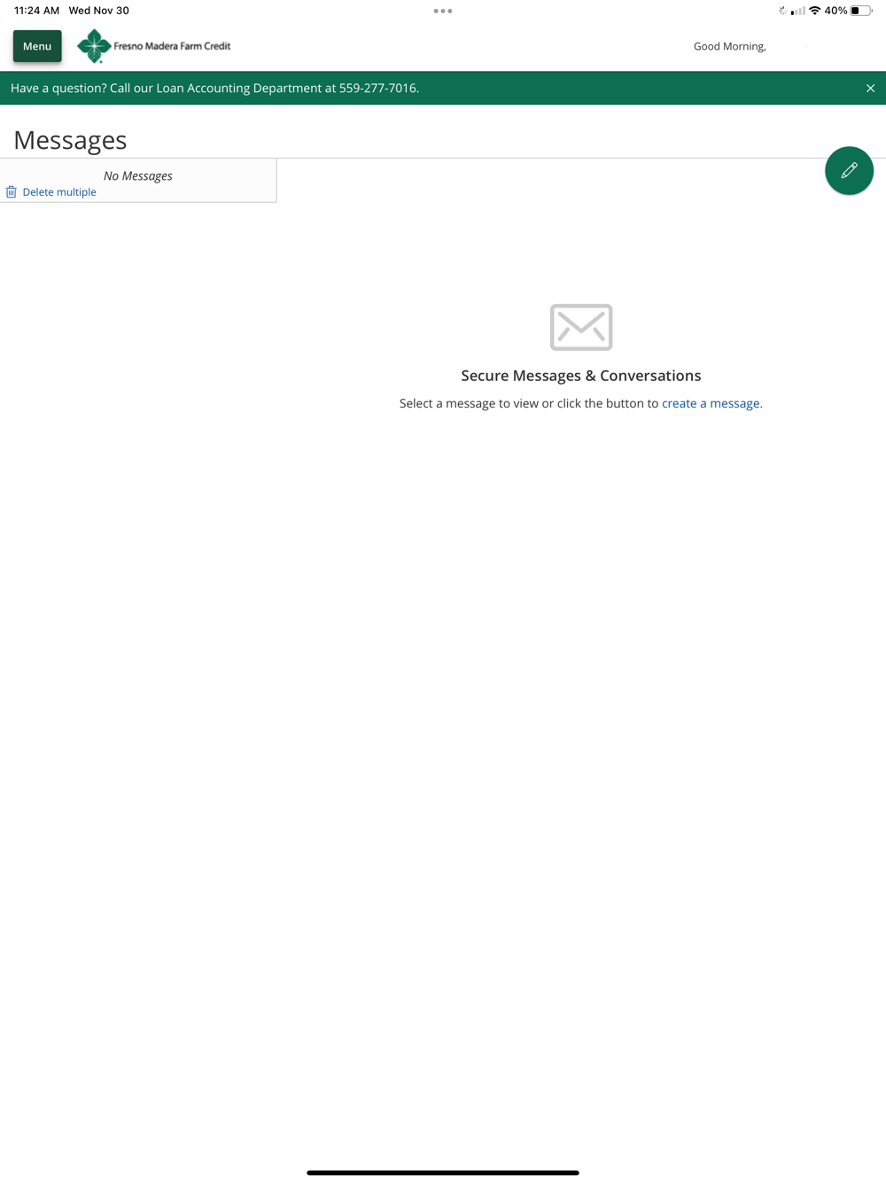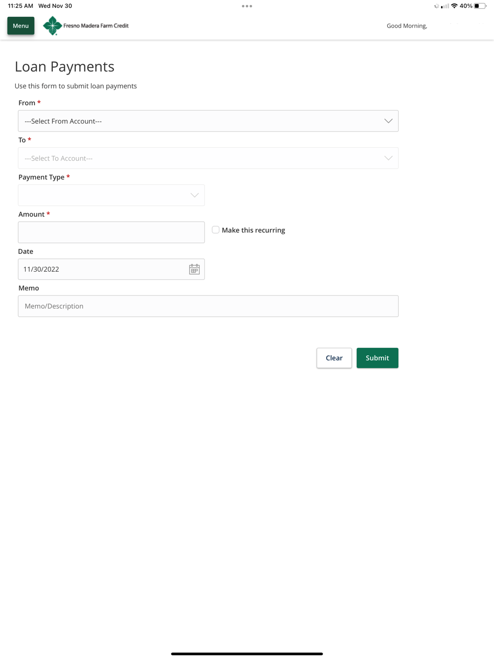 FMFC mobile banking provides customers with a convenient and secure service to view and manage your farm credit lending accounts. Access your accounts 24/7 from any location. Our application allows you to check balances, view current and historical transactions, create and approve funds transfer, and process disbursements and payments.