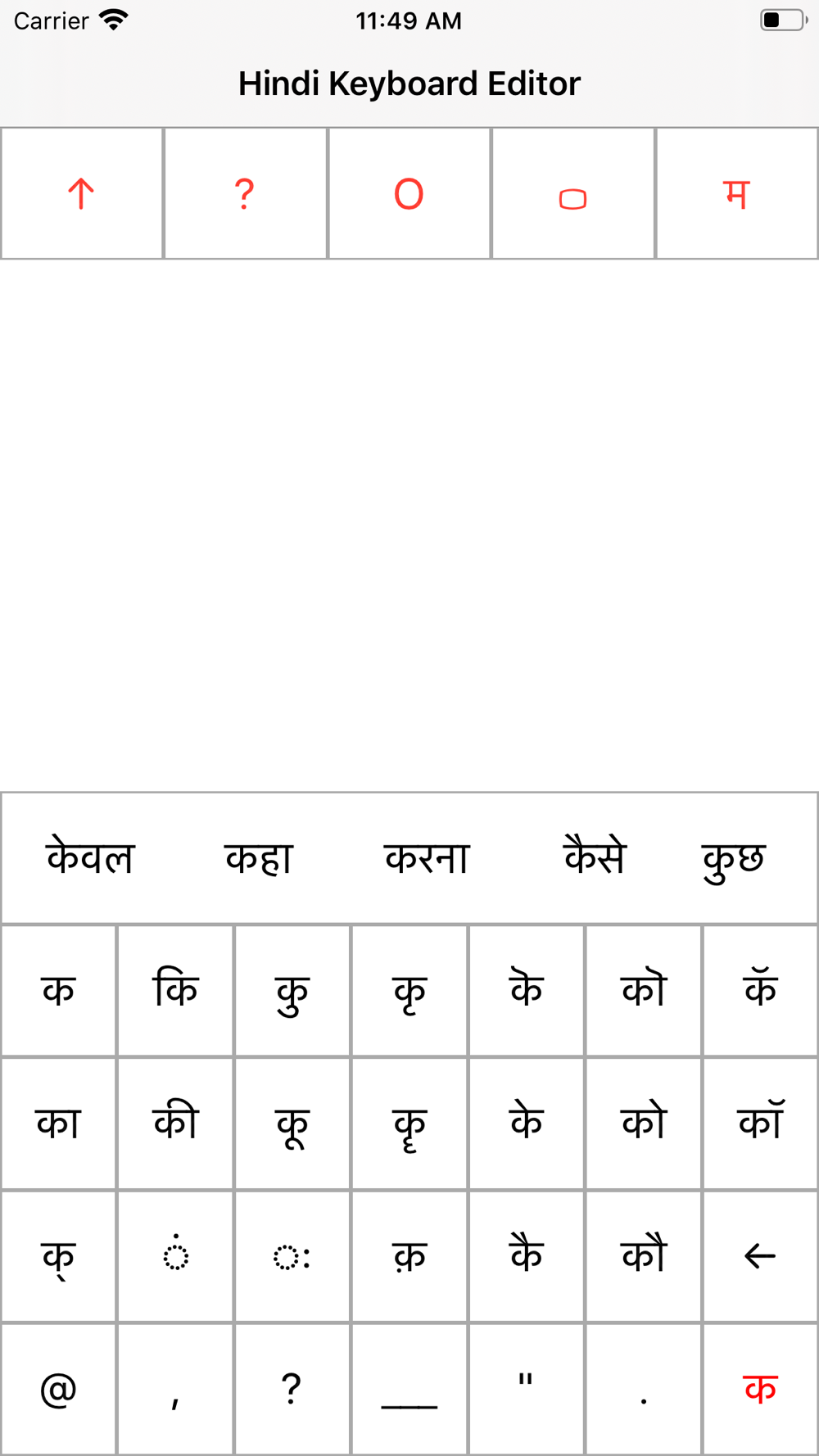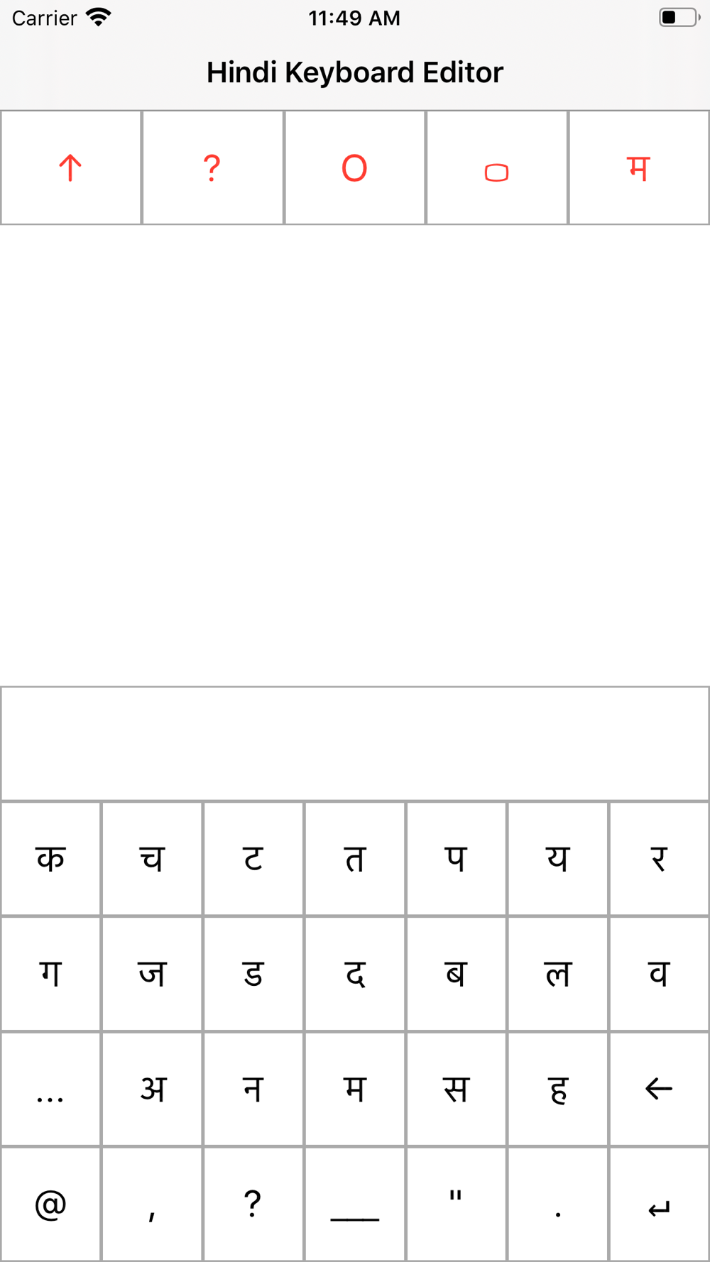 A simple editor to type in Hindi language. Typed text can be copied to other applications. A predictive suggestion is provided as the user types letters. This application helps learners who are learning the language to type and understand the language.